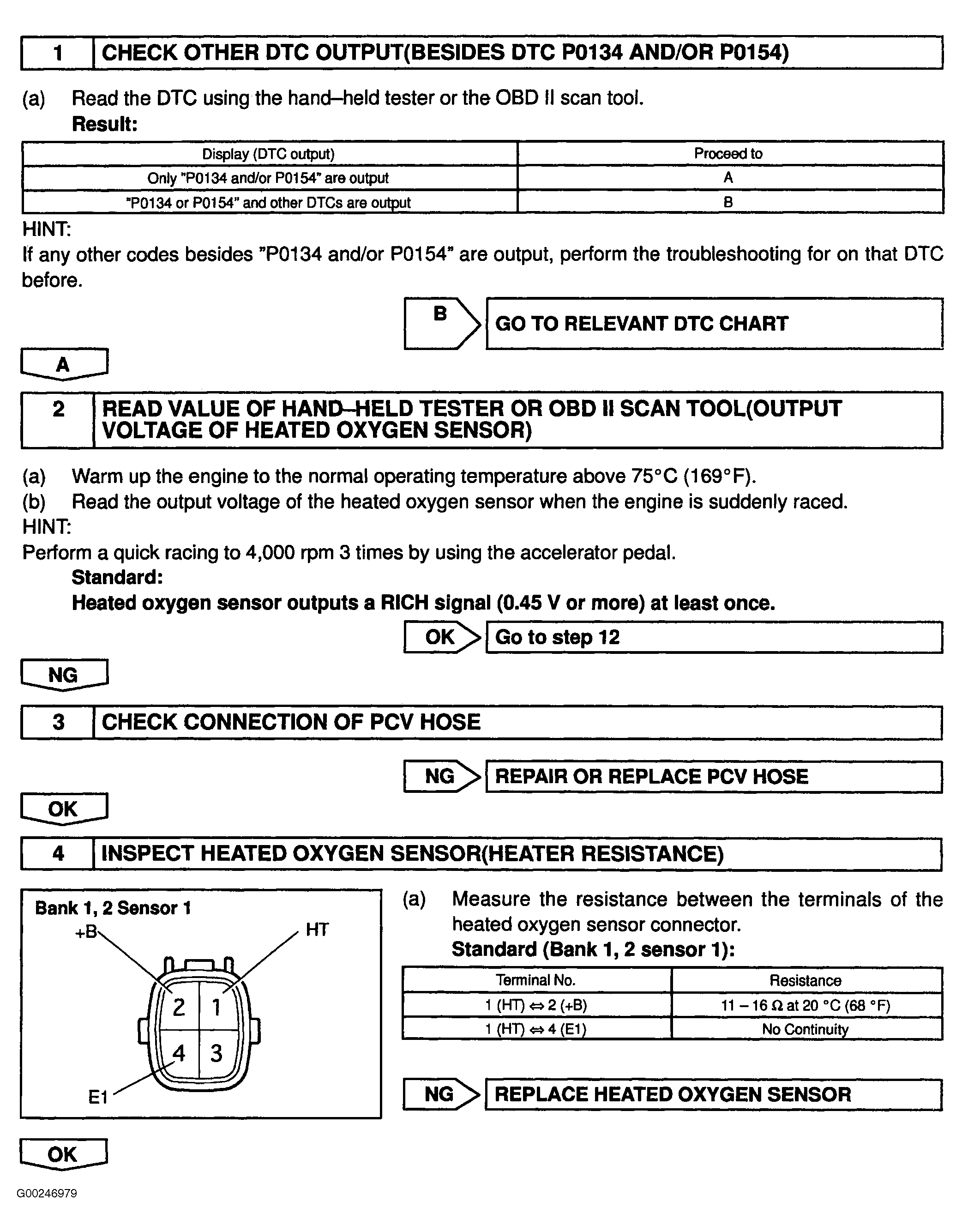 Home >> Toyota >> 2003 >> Matrix Base, 4WD >> Repair and Diagnosis >> External Pages >> Different car >> Section 175 (Engine Controls - Self-Diagnostics) >> Diagnostic Tests >> DTC P0134: Oxygen Sensor Circuit No Activity Detected (Bank 1 Sensor 1) Or DTC P0154: Oxygen Sensor Circuit No Activity Detected (Bank 2 Sensor 1) >> Diagnosis & Repair