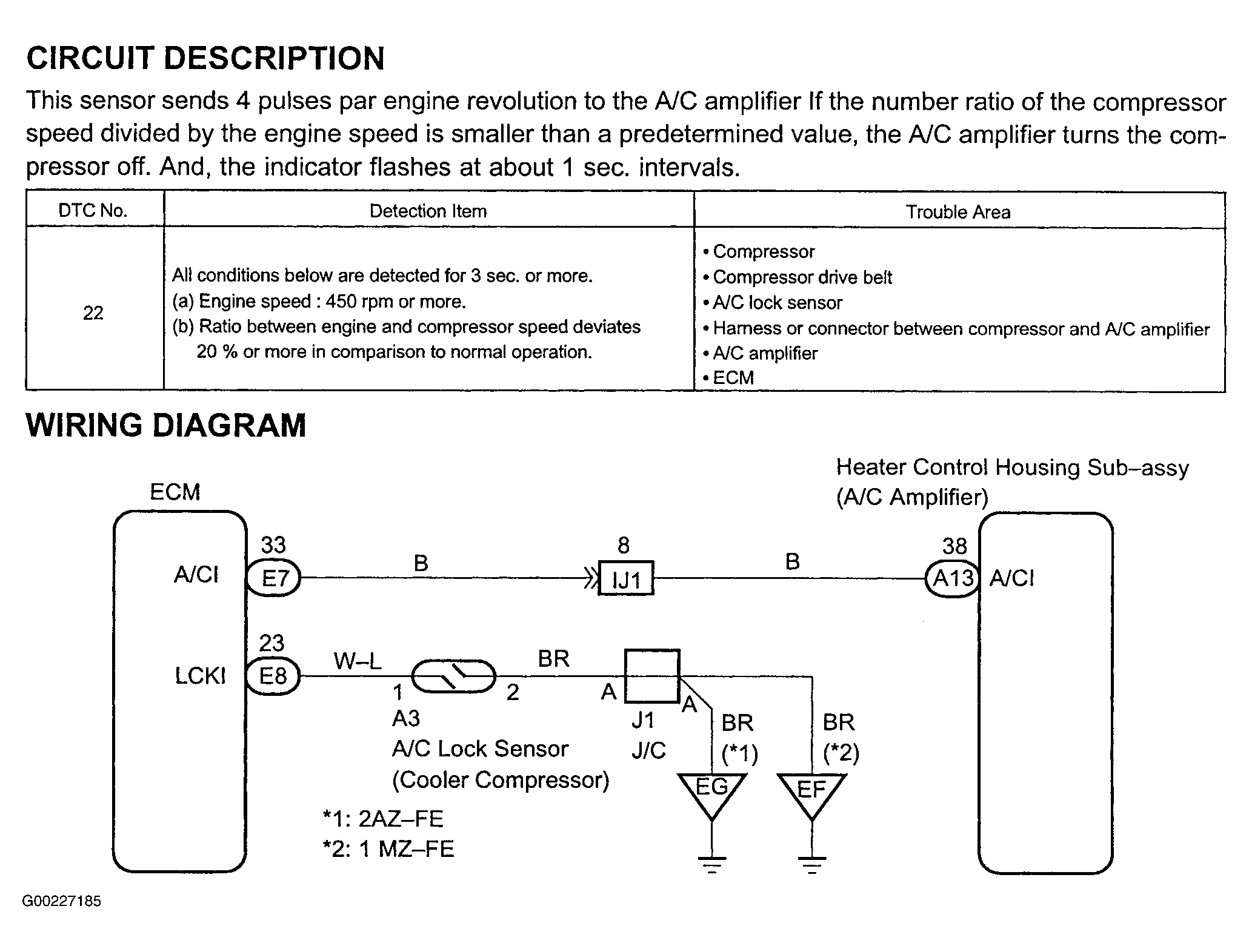 Fig 1: A/C Compressor Lock Sensor Circuit Description & Diagram (Camry)