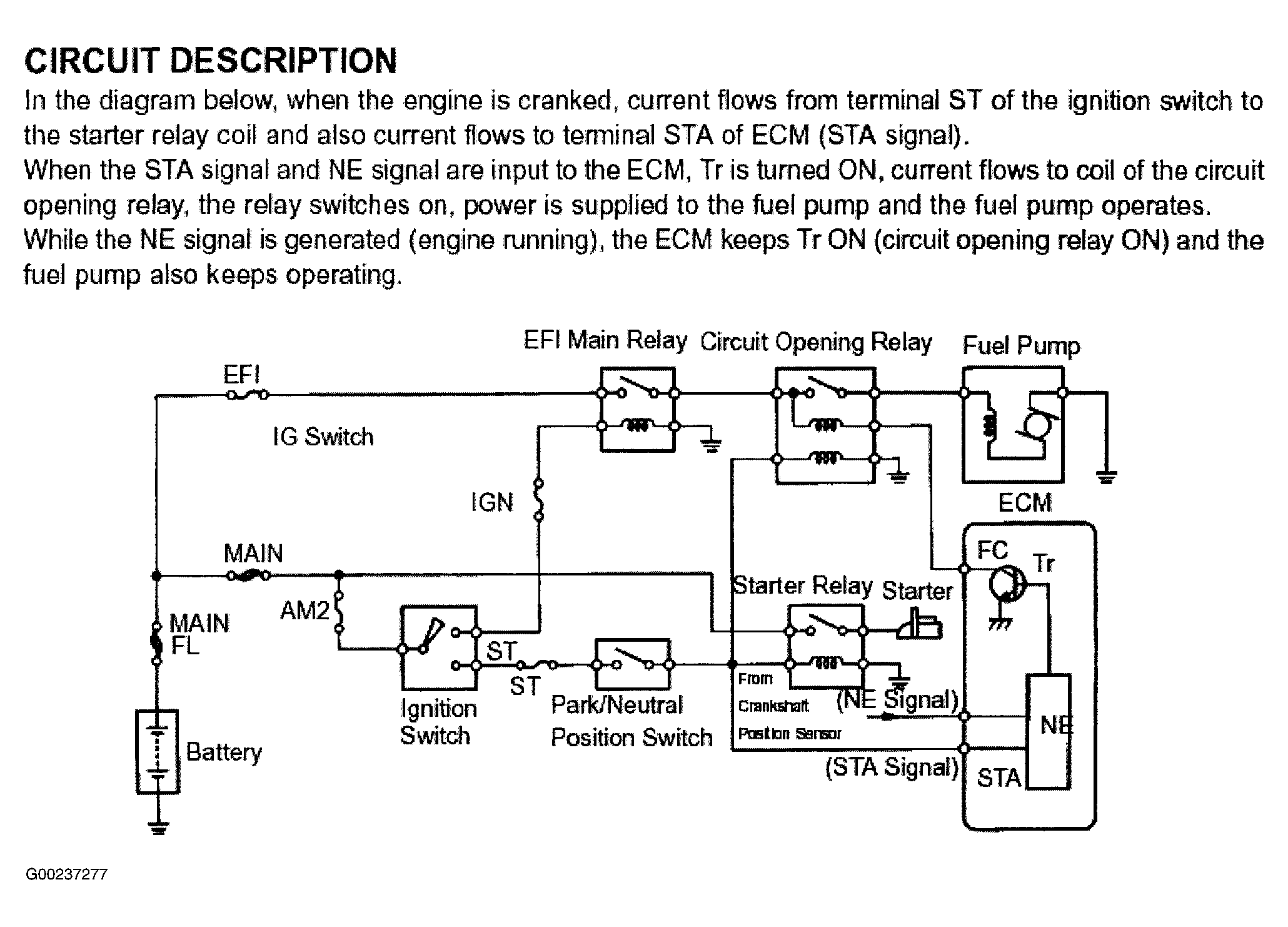 Fig 1: Fuel Pump Control Circuit Description & Diagram (Celica)
