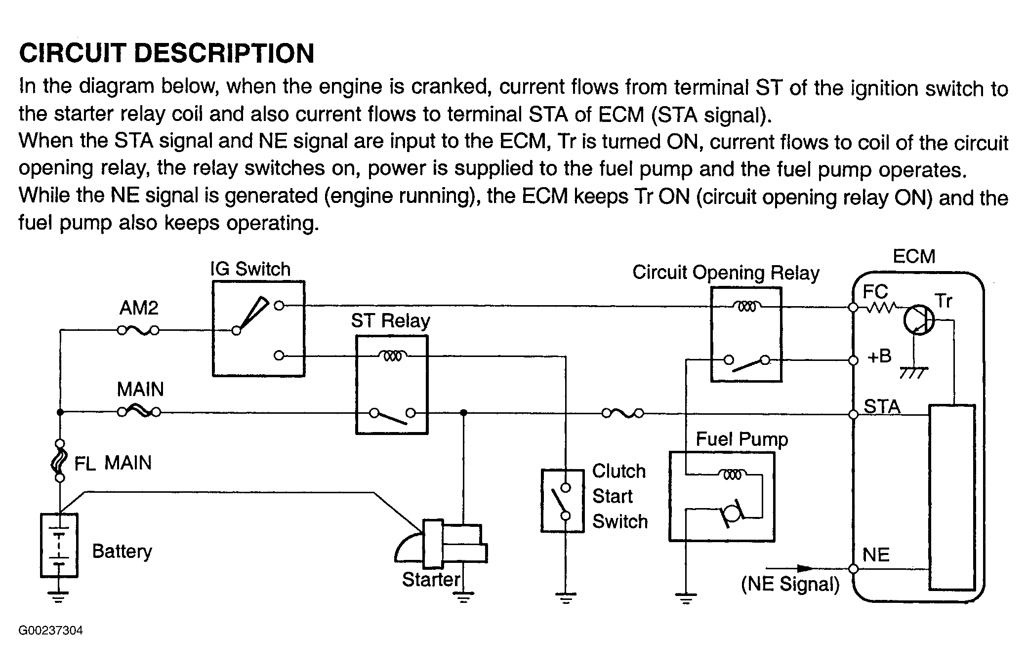 Fig 1: Fuel Pump Control Circuit Description & Diagram (MR2)