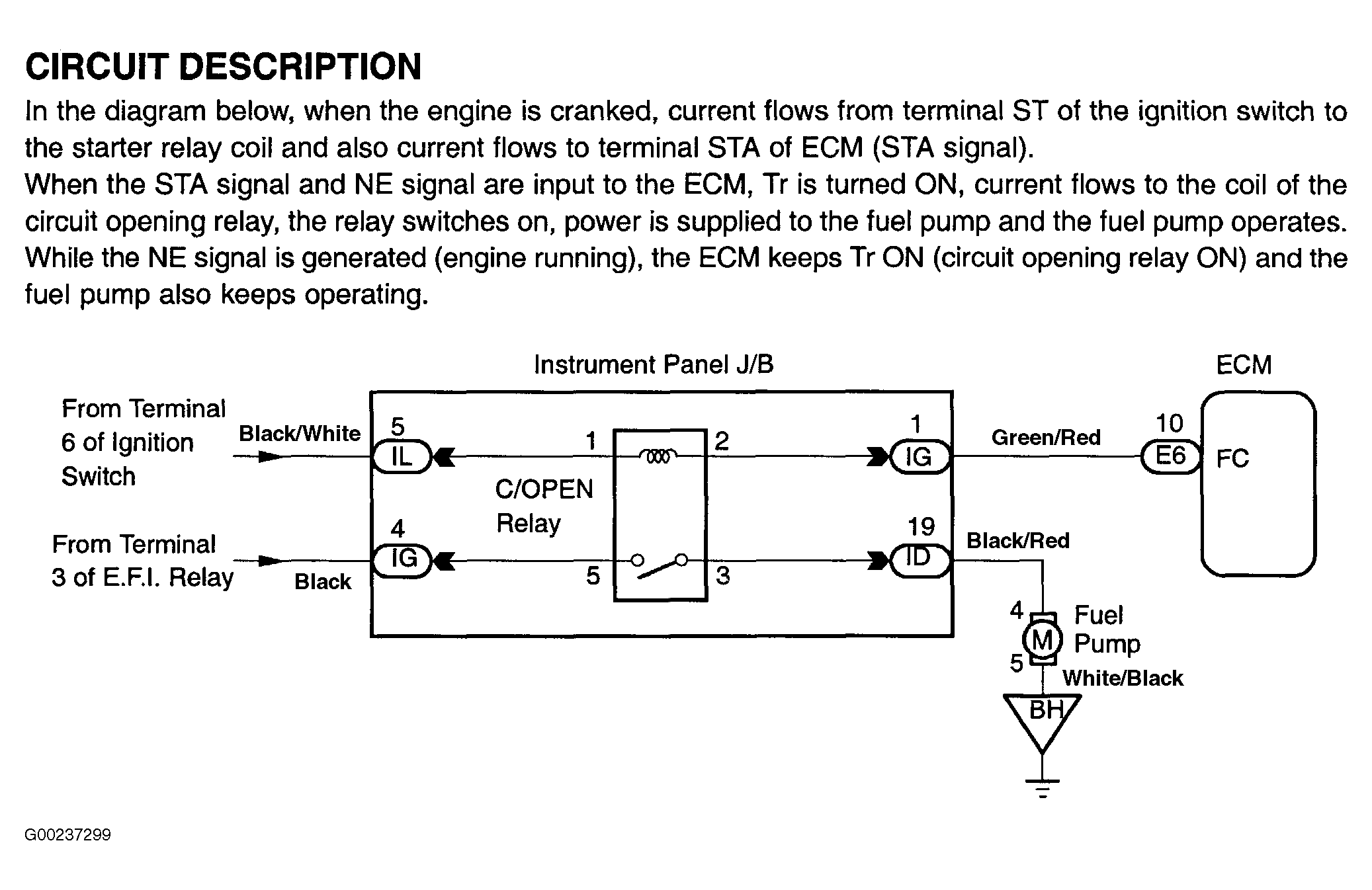 Fig 1: Fuel Pump Control Circuit Description & Diagram (Matrix)