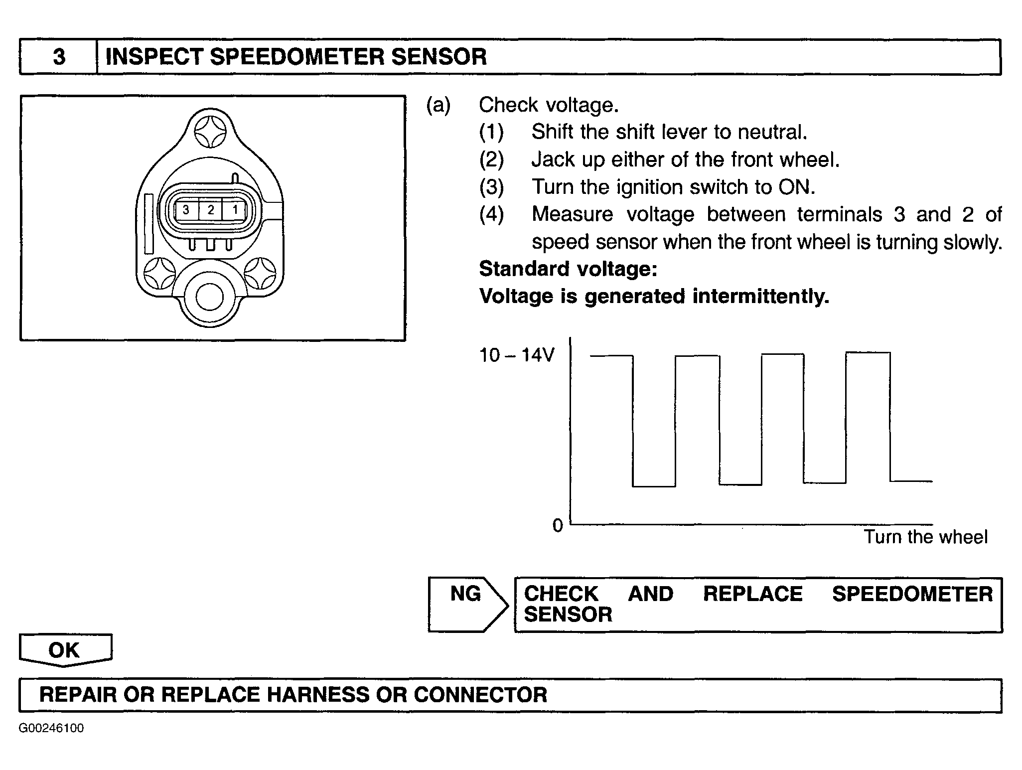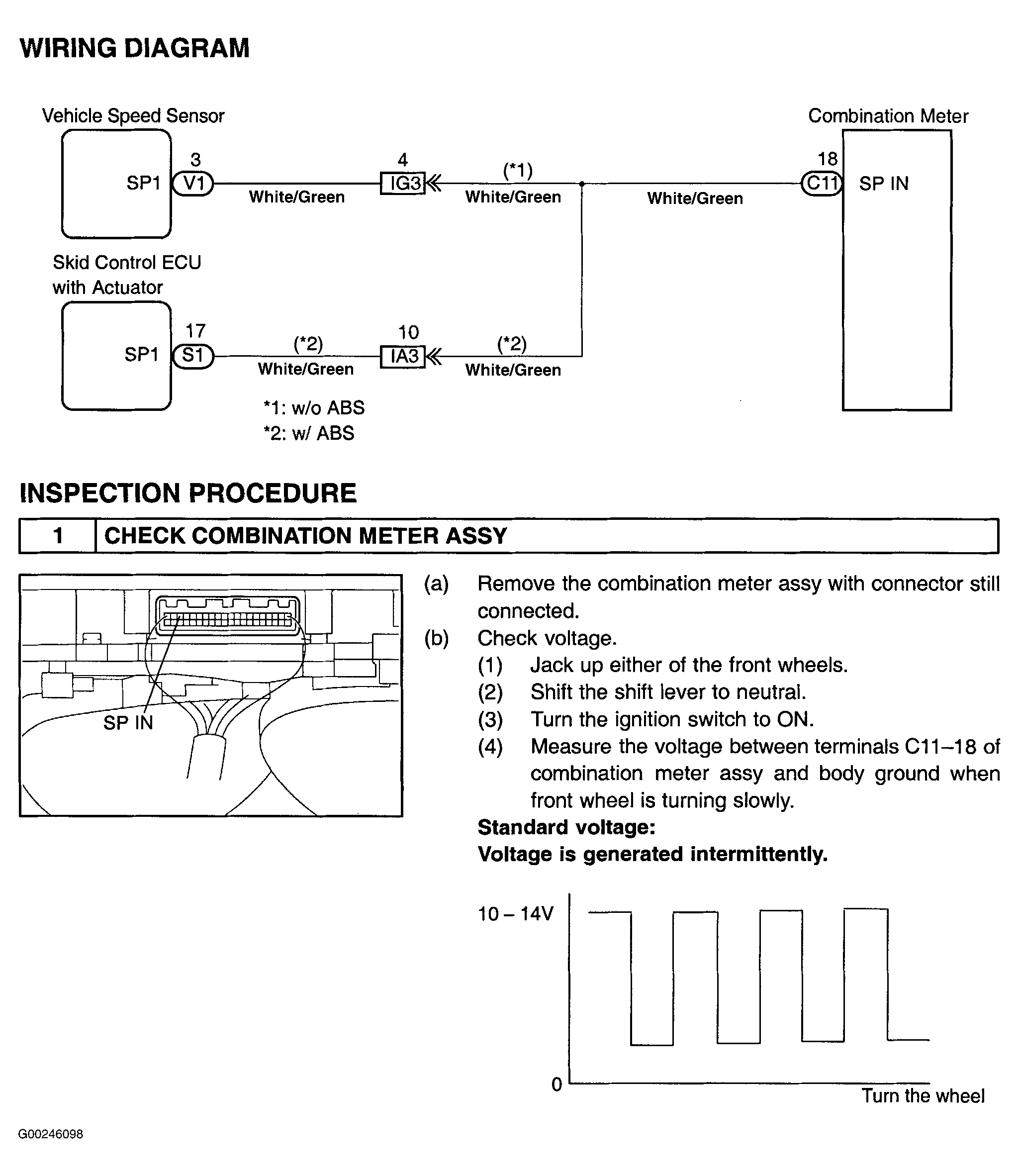 Fig 1: Testing Vehicle Speed Sensor - Wiring Diagram & Step 1 (Matrix)
