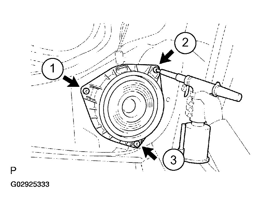 2. Using a drill of less then 4 mm (0.16 in.), drill out the 3 rivet heads and remove the rear speaker assy from the rear door panel.