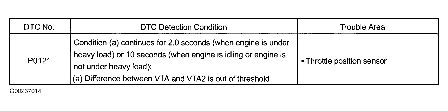 Home >> Toyota >> 2003 >> Matrix Base, FWD, Standard >> Repair and Diagnosis >> External Pages >> Different car >> Section 102 (Engine Control System Self Diagnostics) >> Diagnostic Tests >> DTC P0121: Throttle Position Sensor Circuit Range/Performance >> Possible Causes