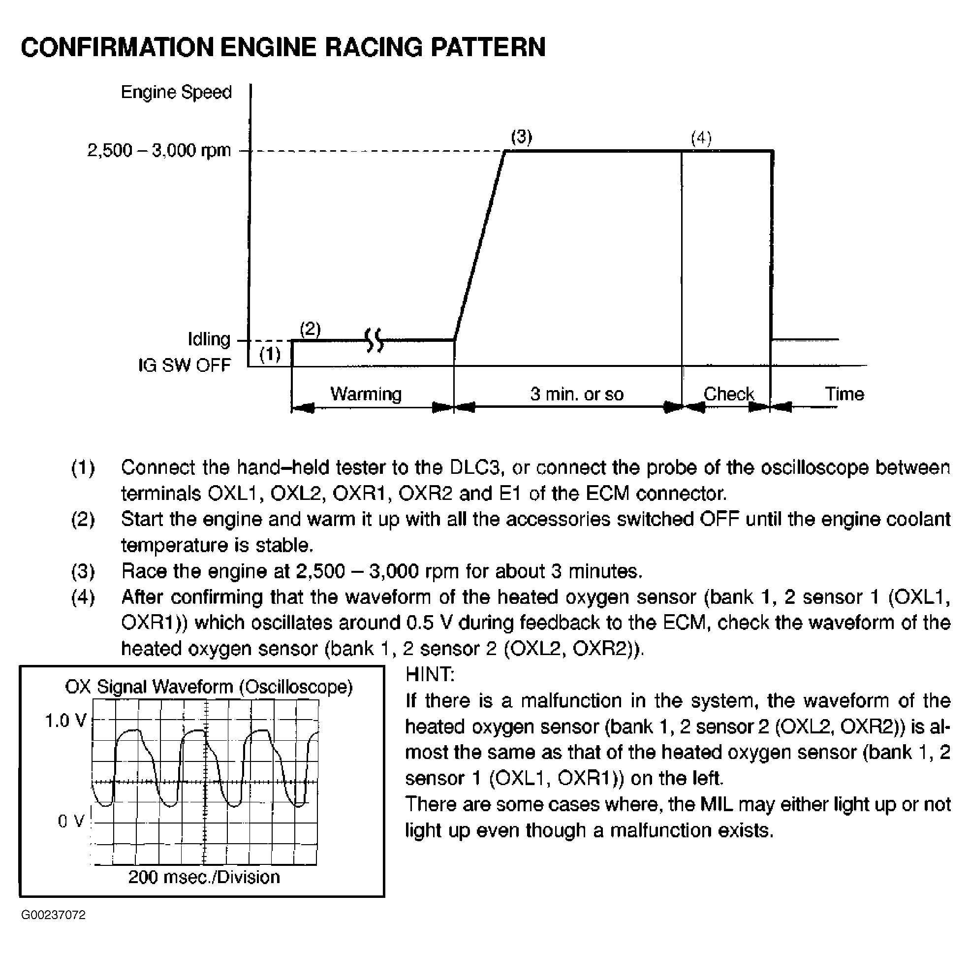 For confirmation engine racing pattern procedure, see Fig 1.