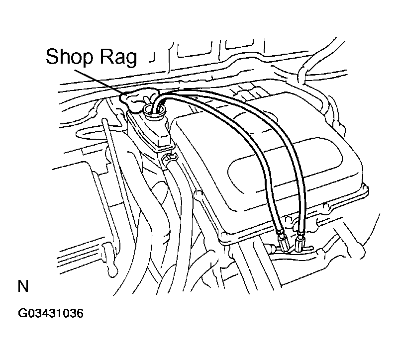 To prevent coolant from splashing, place a shop rag on the overflow pipe as shown in Fig 4.