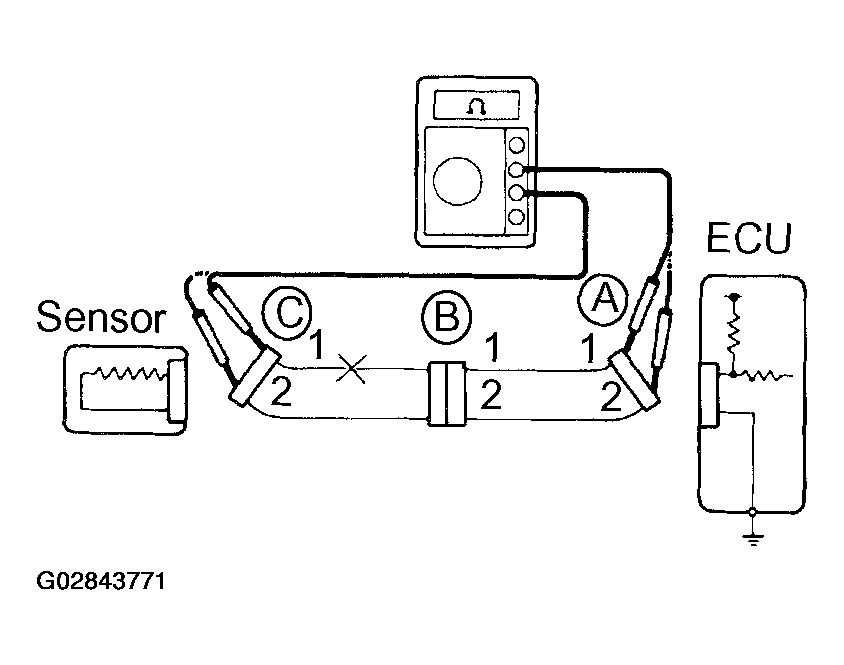 Therefore, it is found out that there is an open circuit between terminal 1 of connector "A" and terminal 1 of connector "C".