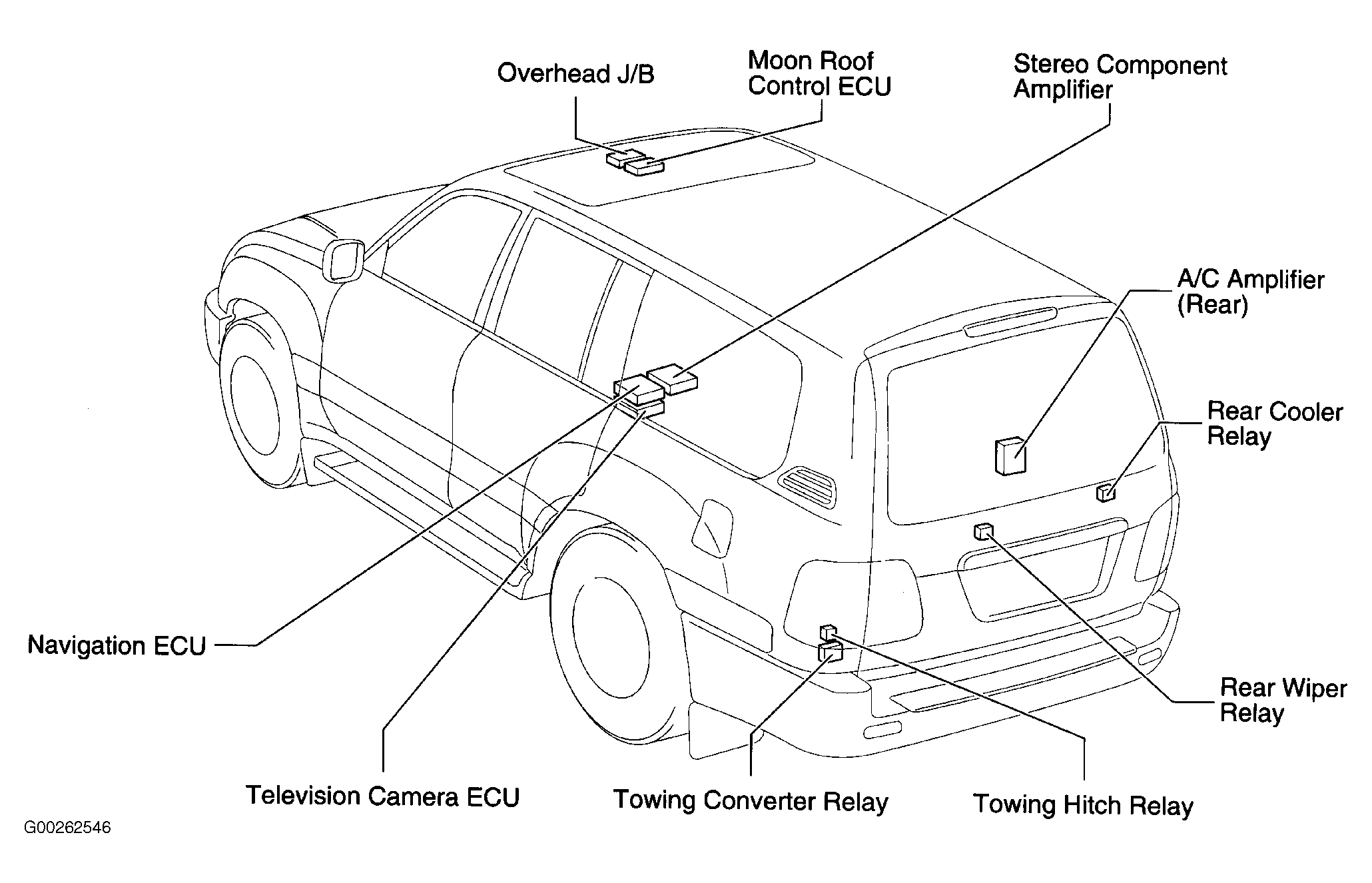 | Overhead J/B | In front center of roof. See Figure. |