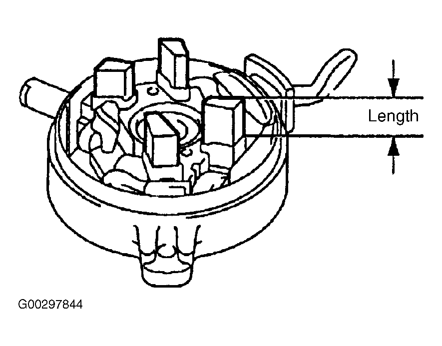- Using vernier calipers, measure the brush length. See Fig 1. Verify length is within specification. See STARTER SPECIFICATIONS . If the length is less than minimum, replace the starter commutator end frame assembly.