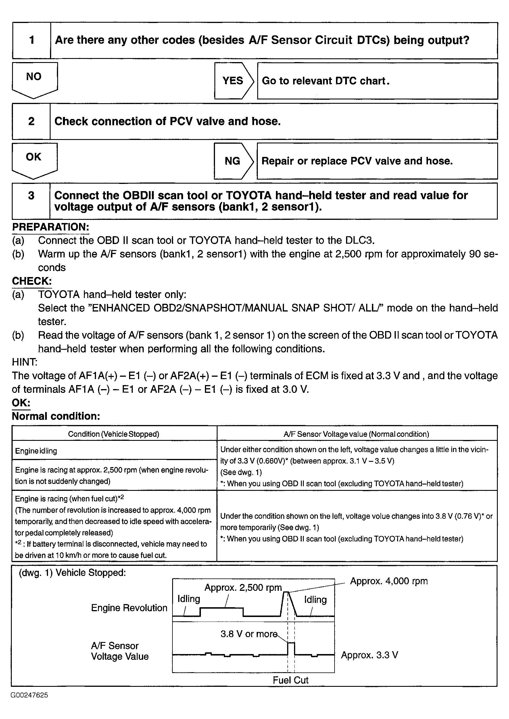 Fig 1: DTCs P1130 & P1150 Diagnostic Procedure (Steps 1-3)