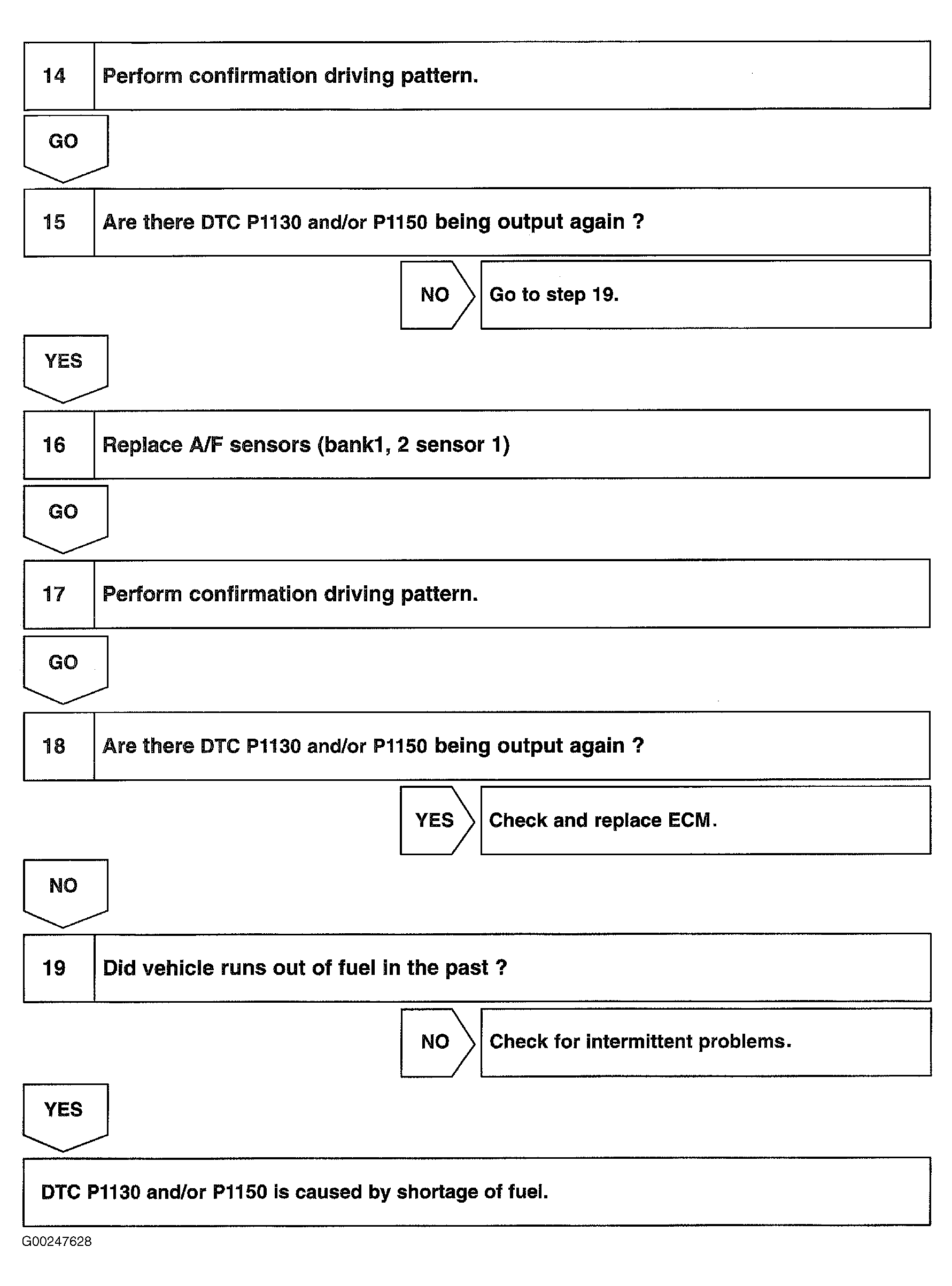 Fig 5: DTCs P1130 & P1150 Diagnostic Procedure (Steps 14-19)