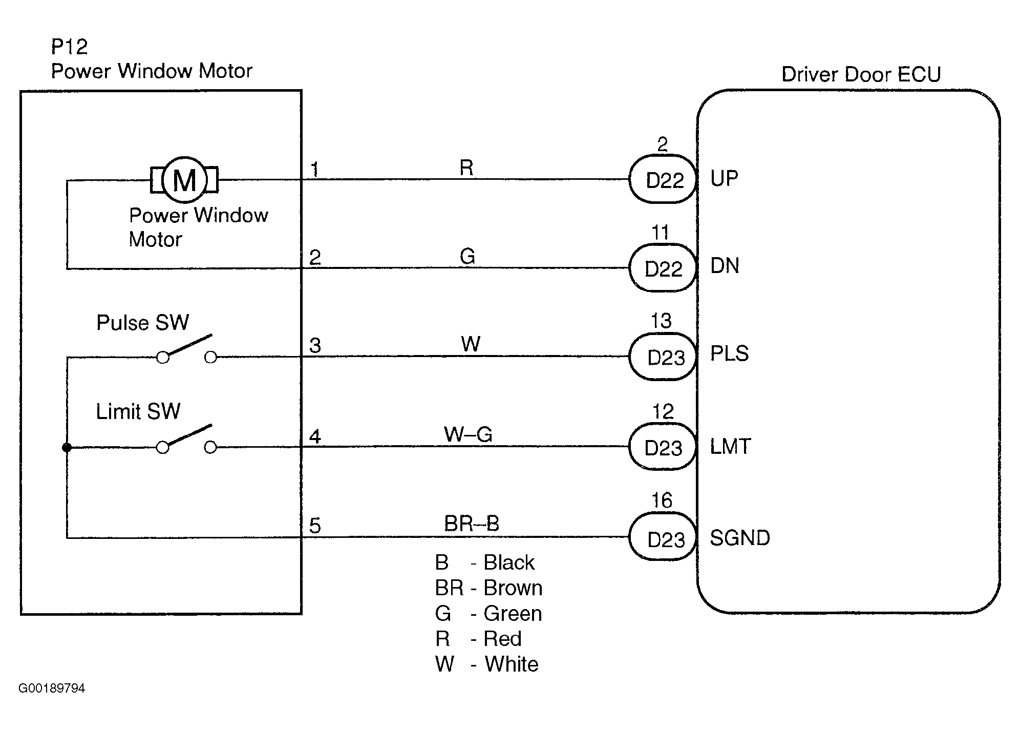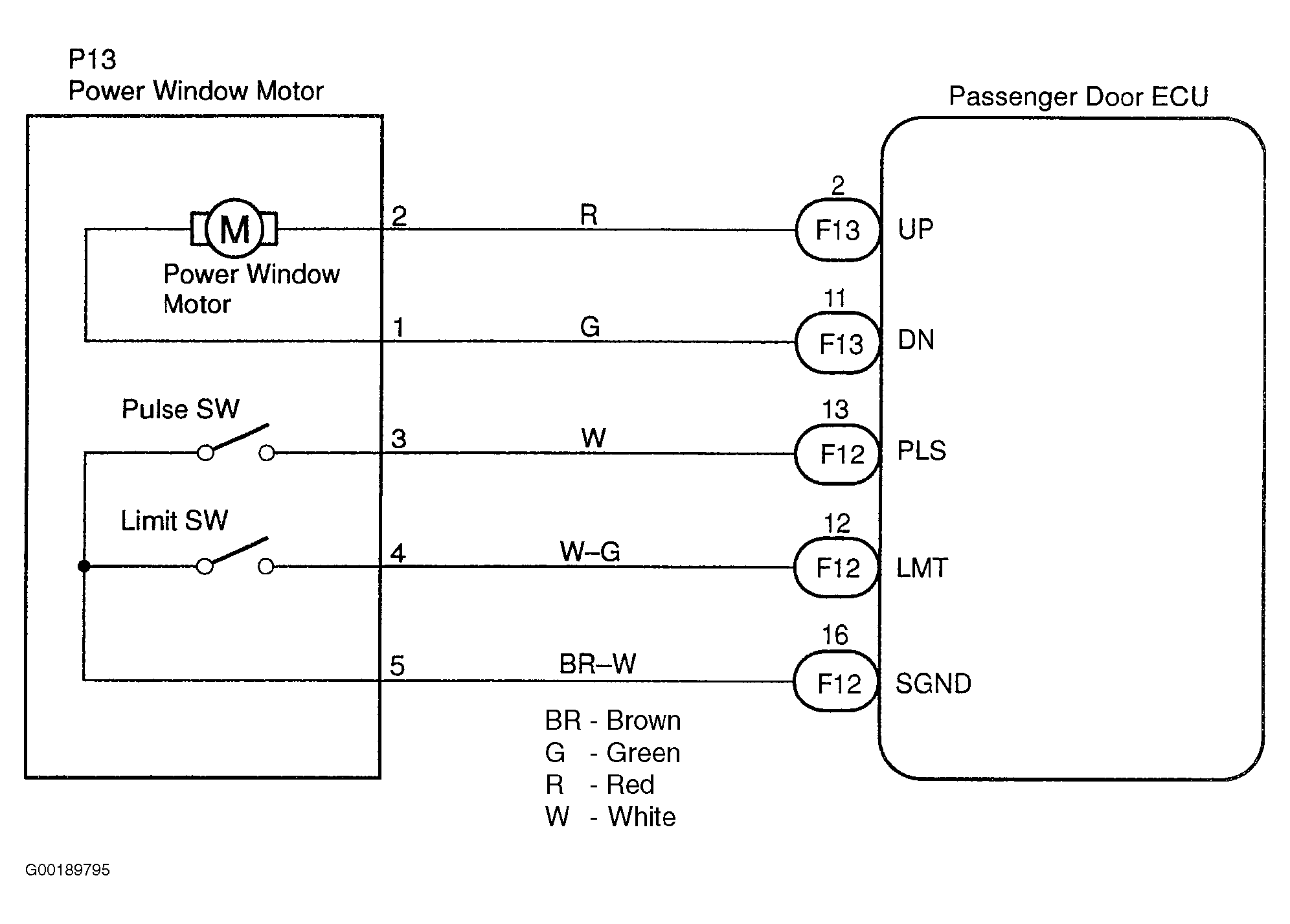The jam protection pulse is built-in the power window motor. The pulse switch outputs ON/OFF pulse when the motor rotates. See Figure and Figure .
