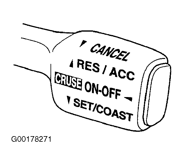 Check the control switch (MAIN, CANCEL, SET/COAST, RES/ACC). See Figure.