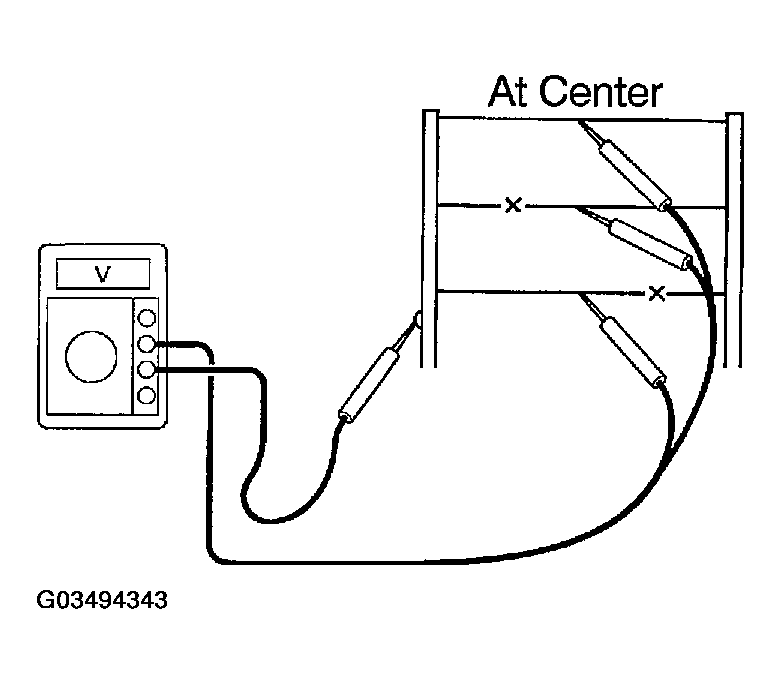 If the heat wire is not broken, the voltmeter indicates 0 V at the positive (+) end of the heat wire but gradually increases to about 12 V as the meter probe moves to the other end.