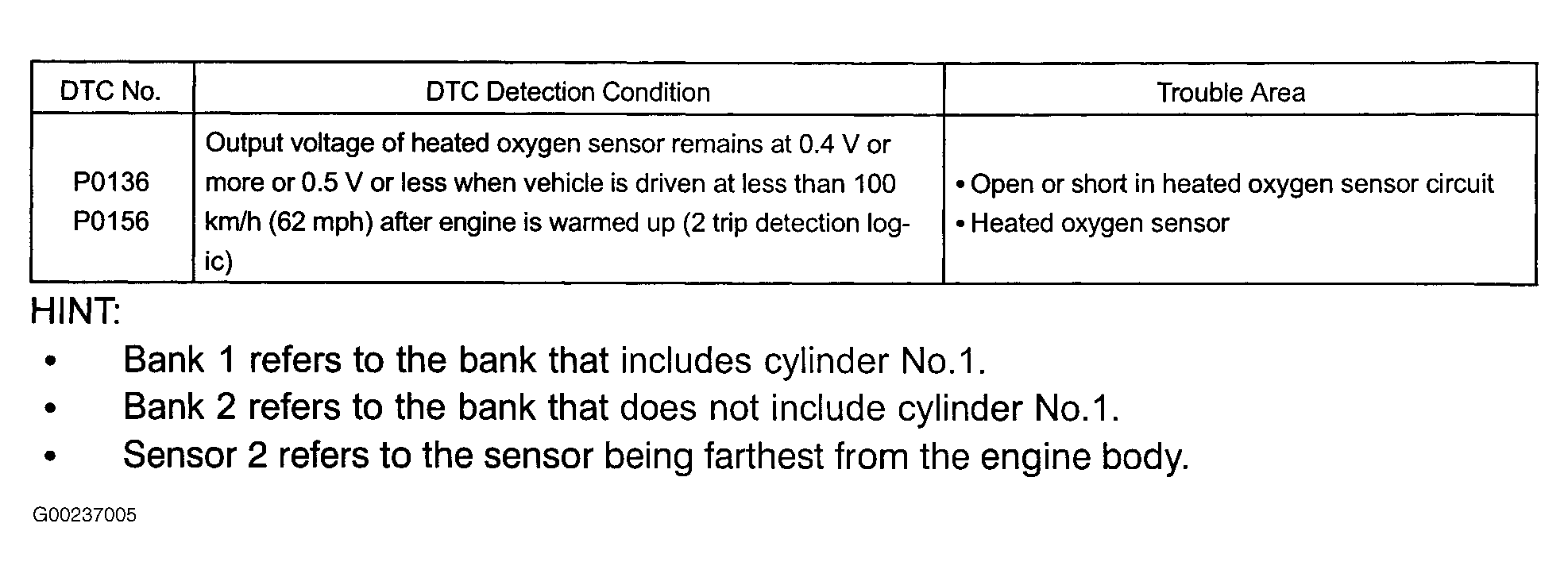 These DTCs use two-trip detection logic. For DTC detection conditions and possible causes see Fig 1.