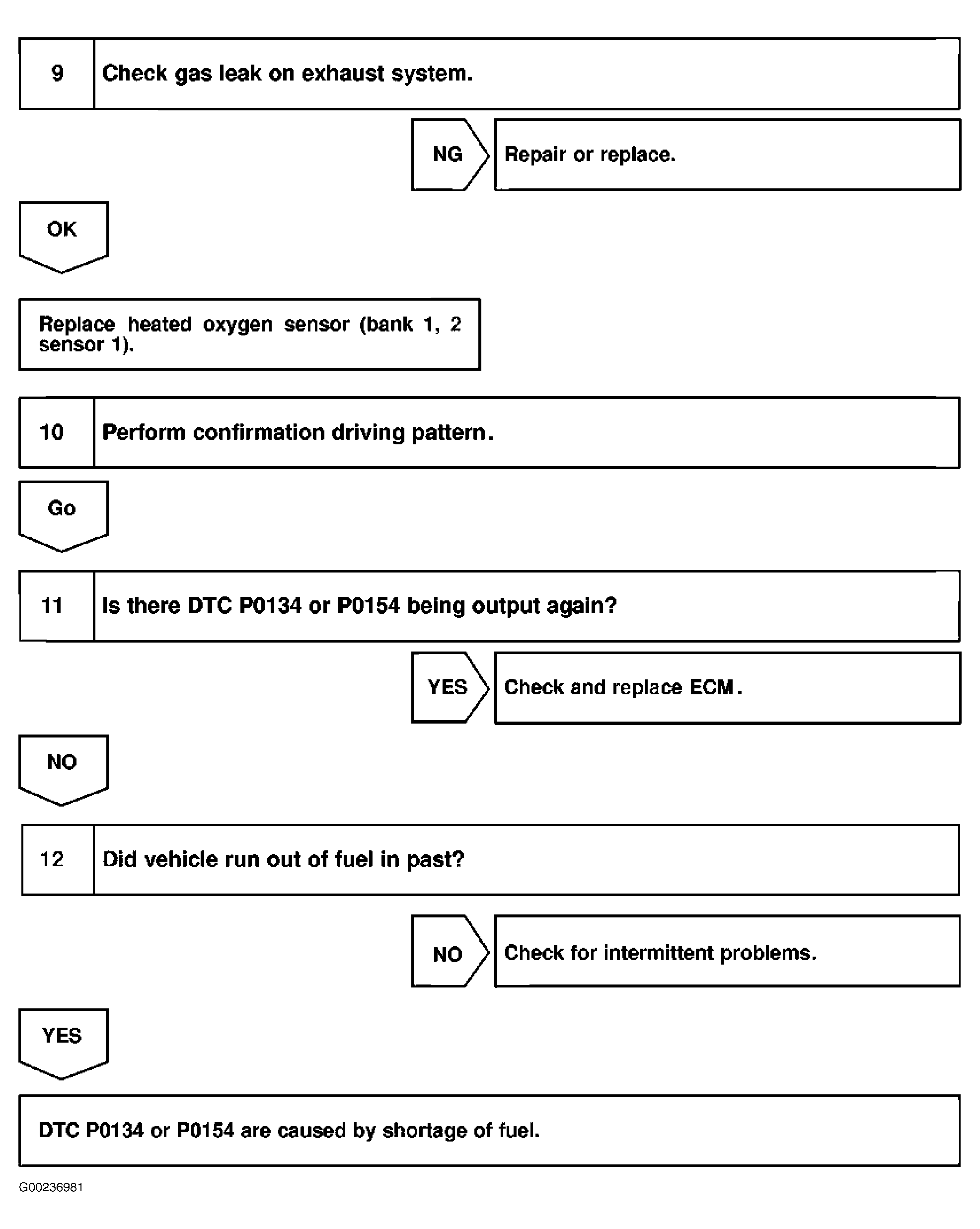 Fig 3: DTCs P0134 & P0154 Diagnostic Procedure (Steps 9-12)