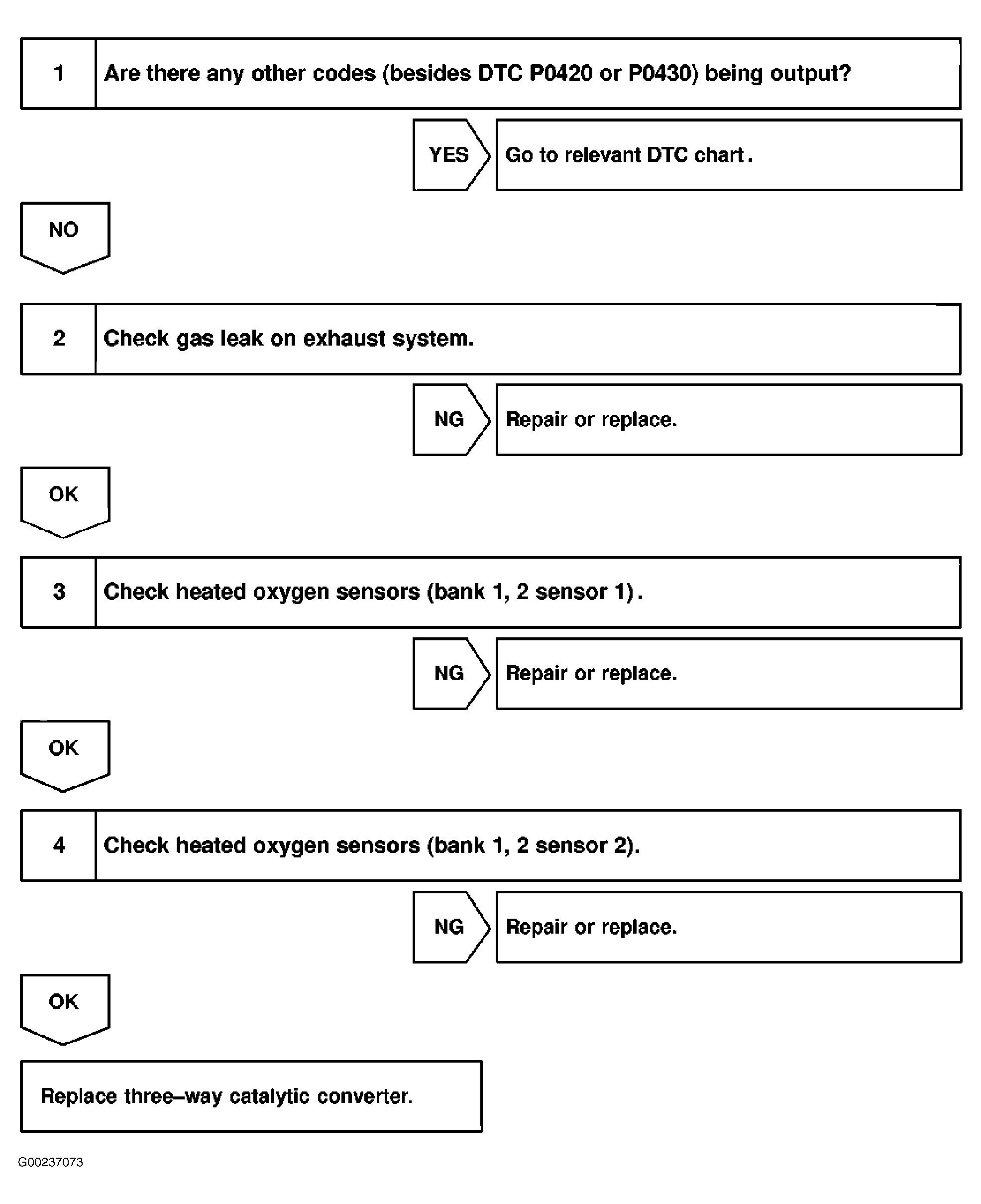 Fig 1: DTCs P0420 & P0430 Diagnostic Procedure (Steps 1-4)