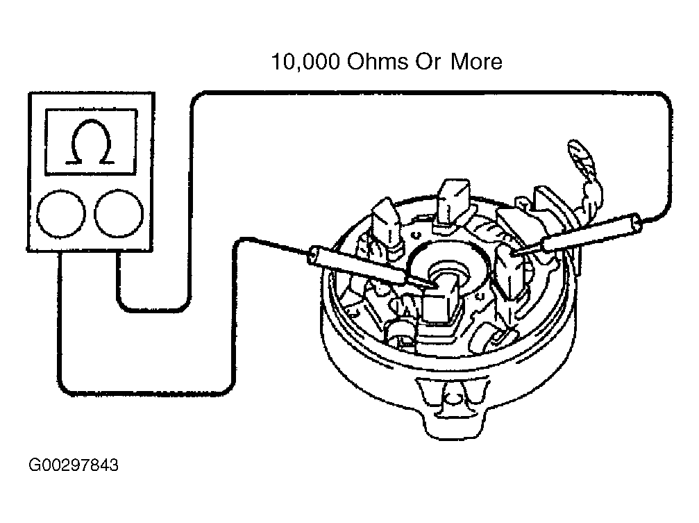 - Using an ohmmeter, measure resistance between the positive and negative brush holders. See Fig 2. Verify resistance is within specification. See STARTER SPECIFICATIONS . If resistance is not within specification, repair or replace the starter commutator end frame assembly.
