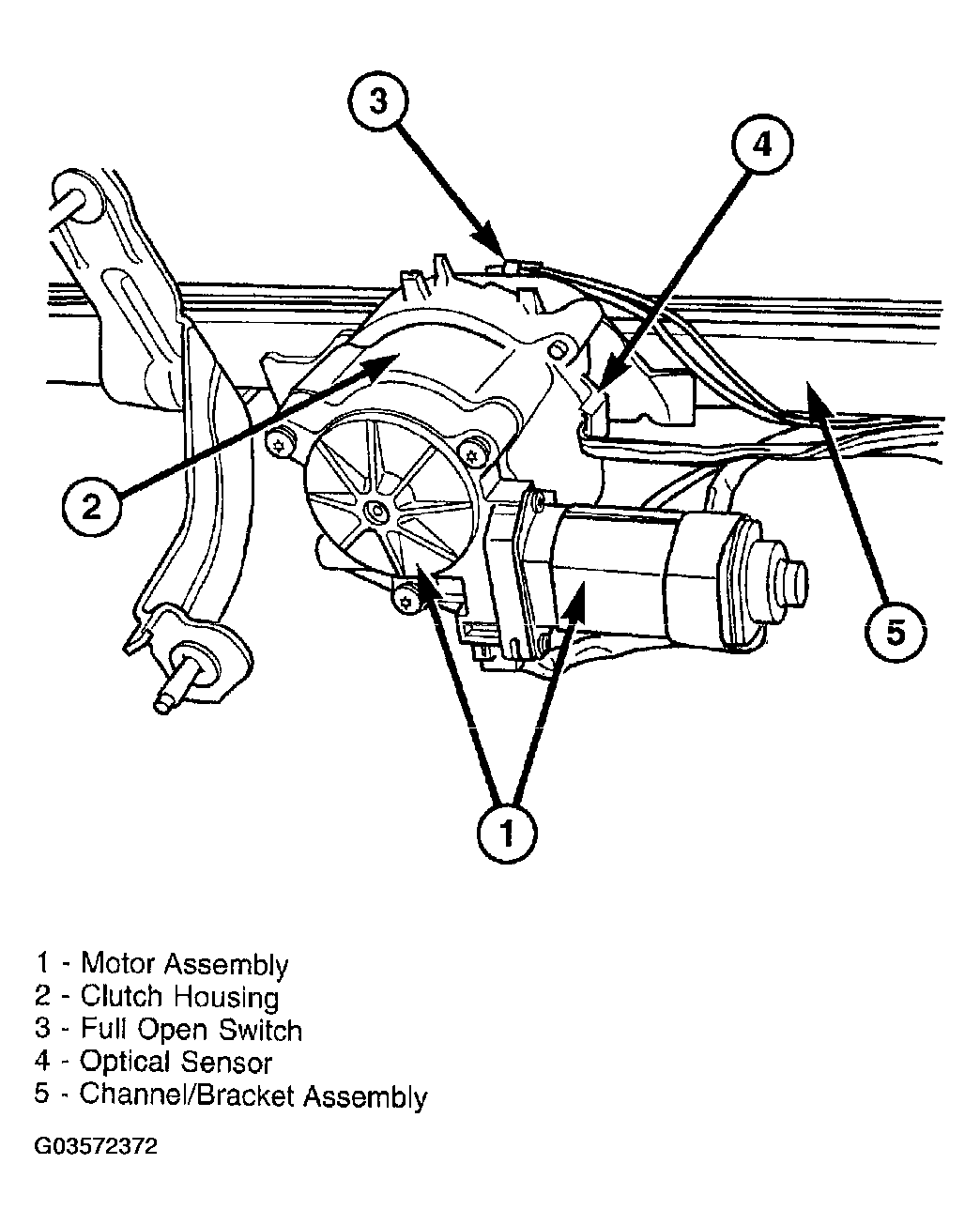 Vehicles equipped with a power liftgate, utilize a power liftgate drive unit. The drive unit assembly (Fig 1) consists of a DC motor, optical sensor, clutch, full-open switch, rack, housing/bracket assembly and wire harness. The clutch and motor portion (Fig 2) of the assembly provides the power and torque required to open or close the liftgate under the worst case conditions. The optical sensor is used to provide the liftgate control module with a clutch/motor speed signal. This speed signal is used to monitor any resistance of liftgate travel and allows the liftgate control module to detect obstructions and control the liftgate accordingly. The clutch assembly is used to allow automatic power open/close mode and/or full manual operation, if desired. The full-open switch is used to let the liftgate control module know when the liftgate is approaching the full open position.