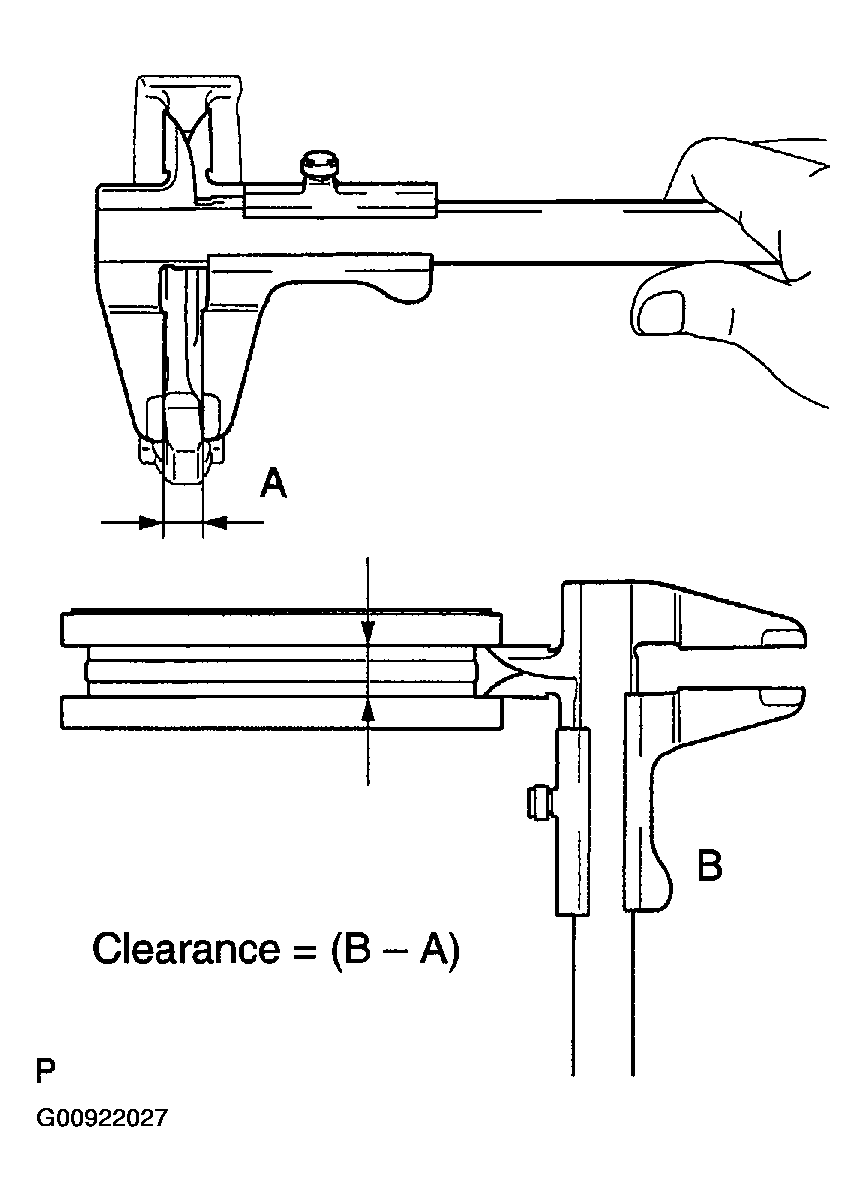NOTE: Ensure the fine lapping compound is completely washed off after rubbing. - Using a feeler gauge, measure the clearance between 4th gear synchronizer ring back and 4th gear spline end.