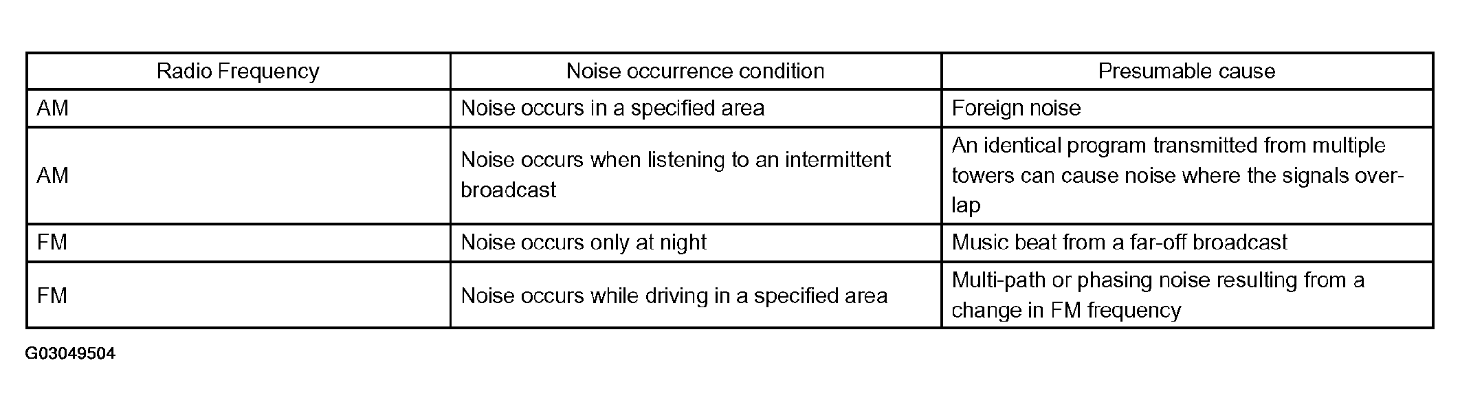 If the noise does not fall into any category in Fig 6 , determine the cause using "Radio reception problems" above. Refer to the Fig 4 and Fig 3 in the .