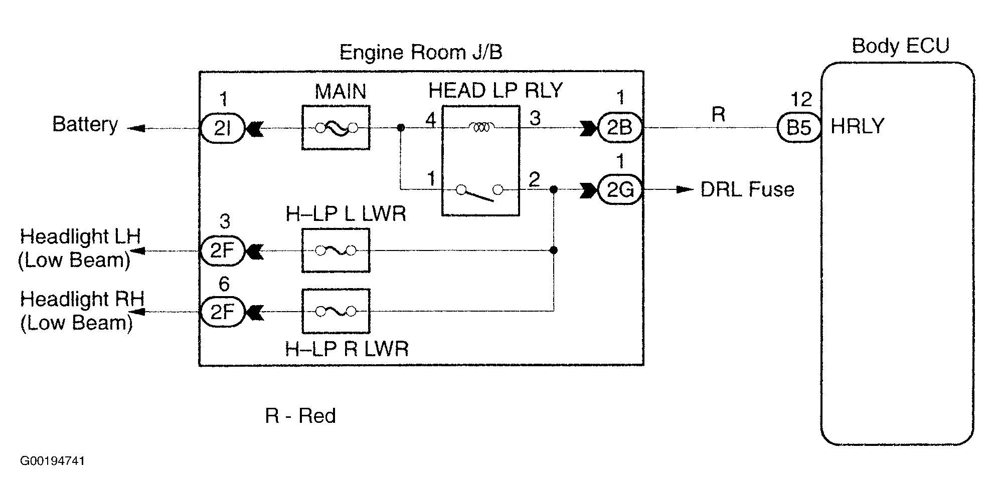 Fig 1: Identifying Headlight Relay Circuit