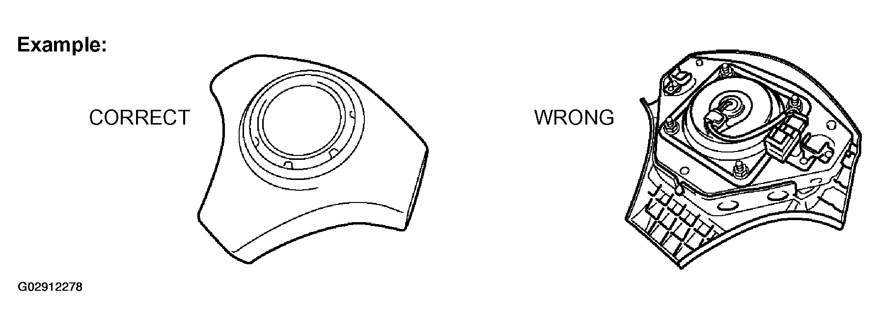 1. When removing the steering wheel pad or handling a new steering wheel pad, it should be placed with the pad top surface facing up see Fig 3. Storing the pad with its metallic surface facing upward may lead to a serious accident if the airbag inflates. In addition, do not store a steering wheel pad on top of one another.