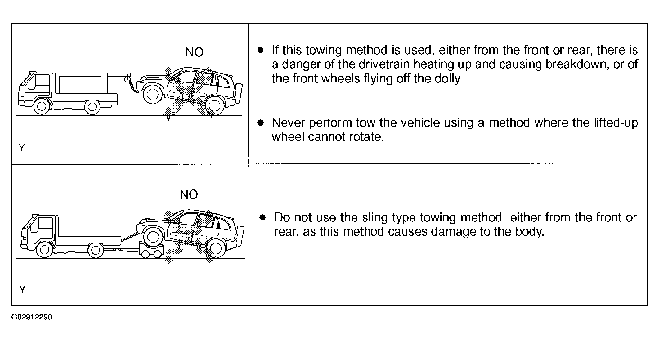 • For example, the towing methods shown in Fig 15 are dangerous or damage the vehicle, so do not use them.