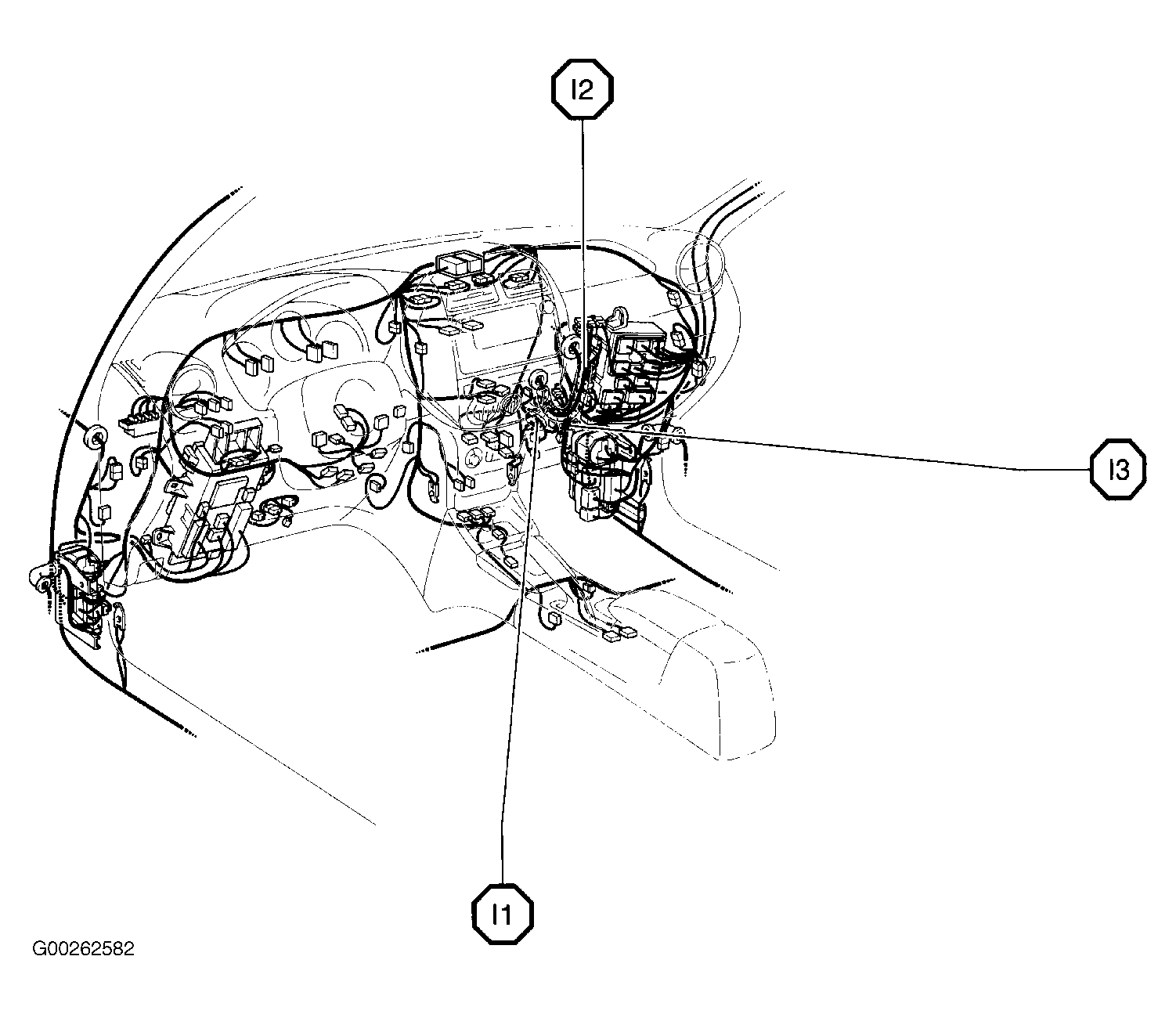 I1 In dash harness, behind right side of dash. See Figure.