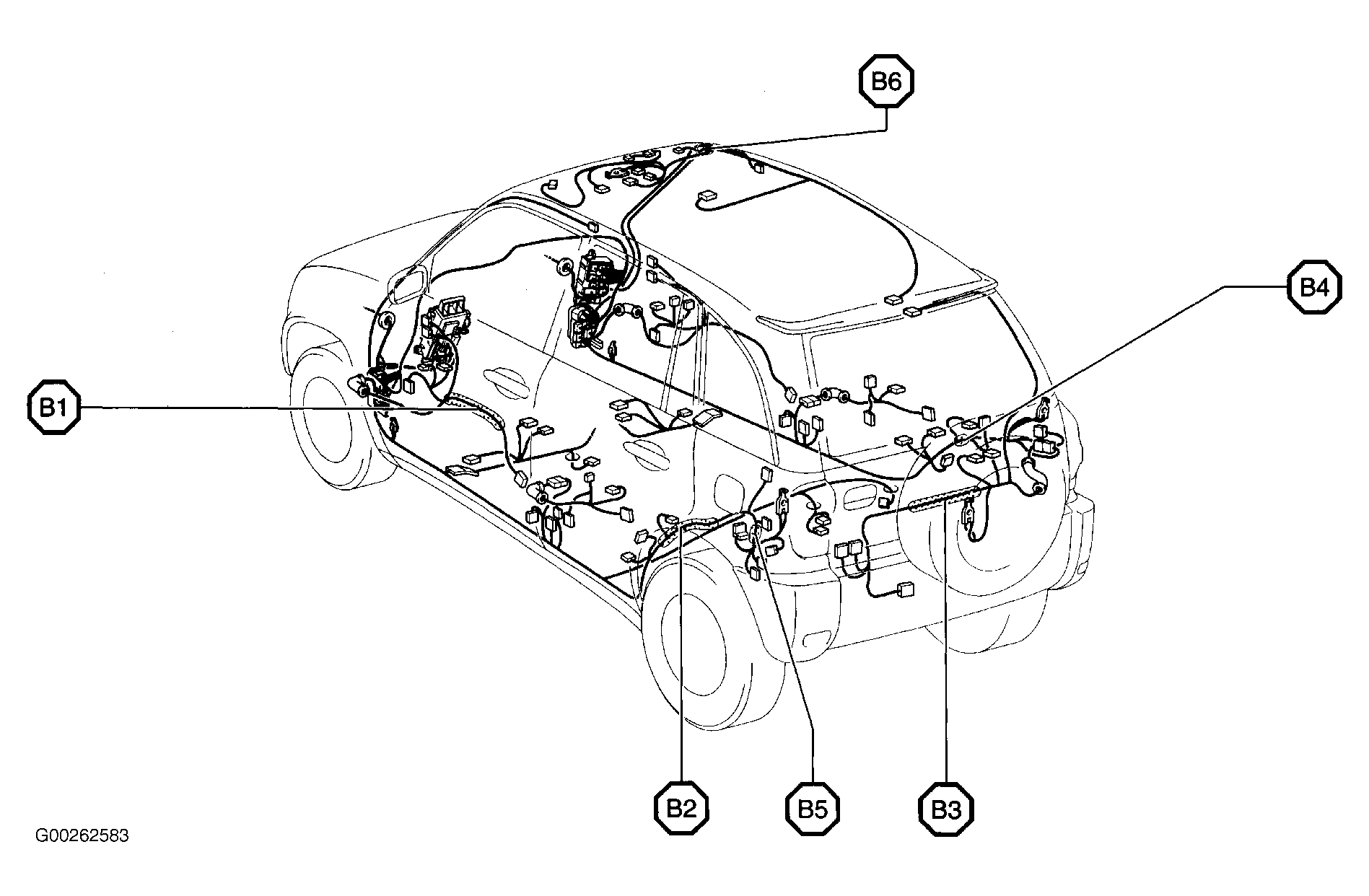B4 In body harness, above right rear wheelwell. See Figure.