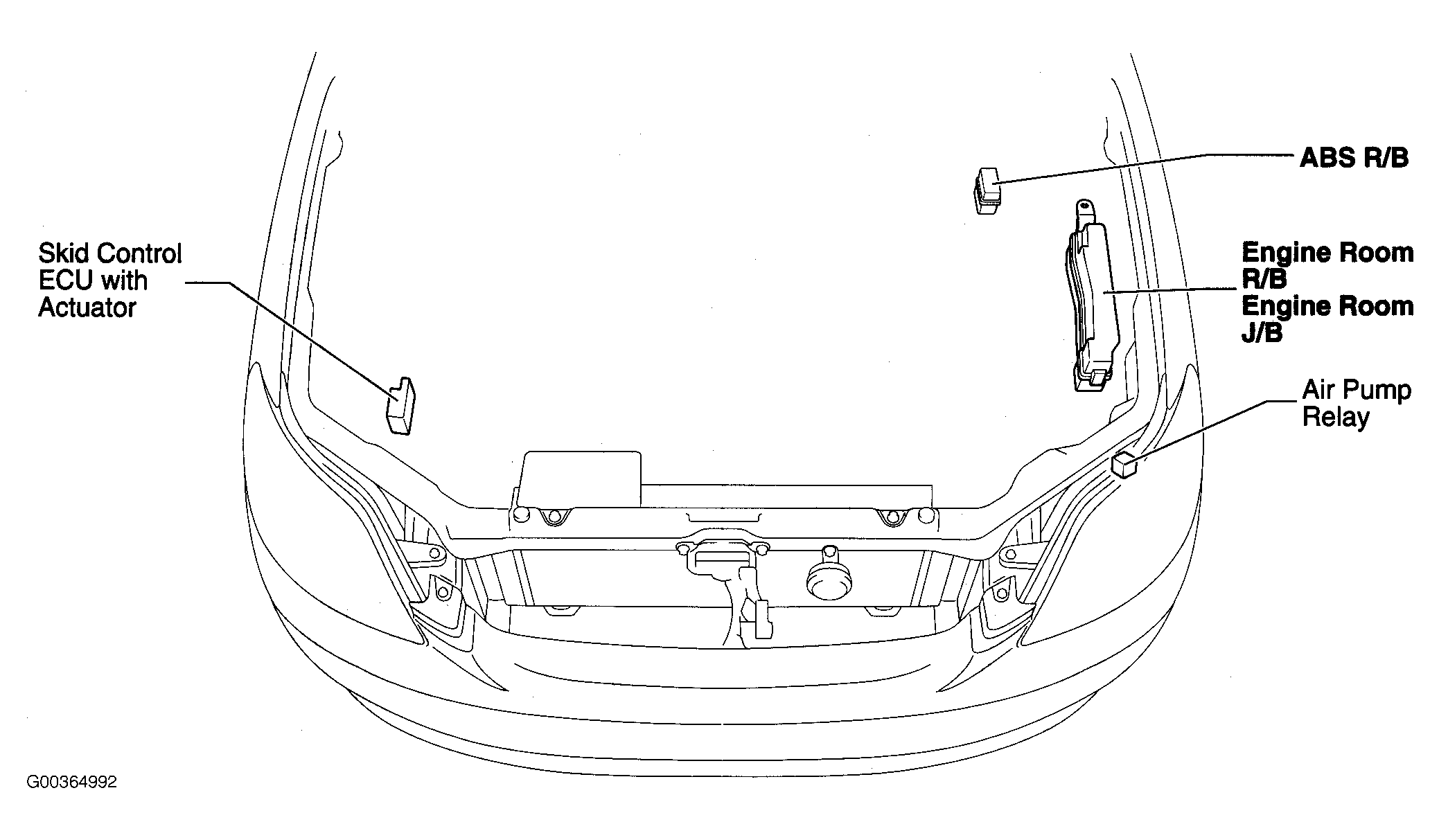 ABS R/B On left side of engine compartment. See Figure.