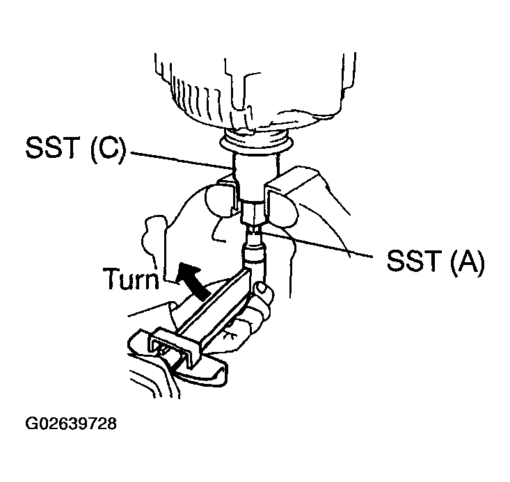 - Insert SST (B) into SST (C), and attach the pulley nut to SST (C).