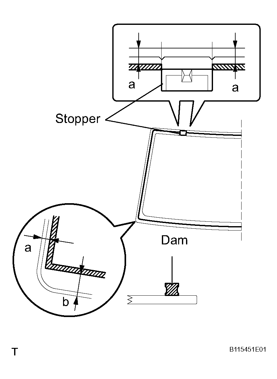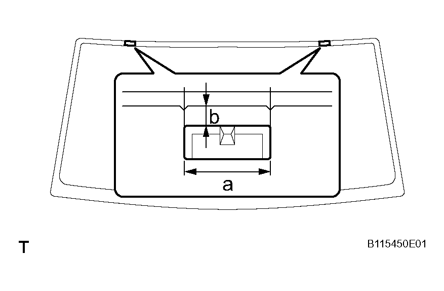 WINDSHIELD GLASS ADHESIVE DAMArea Measurement a 7 mm (0.28 in.) b 20 mm (0.79 in.) NOTE: Do not touch the glass surface after cleaning it.