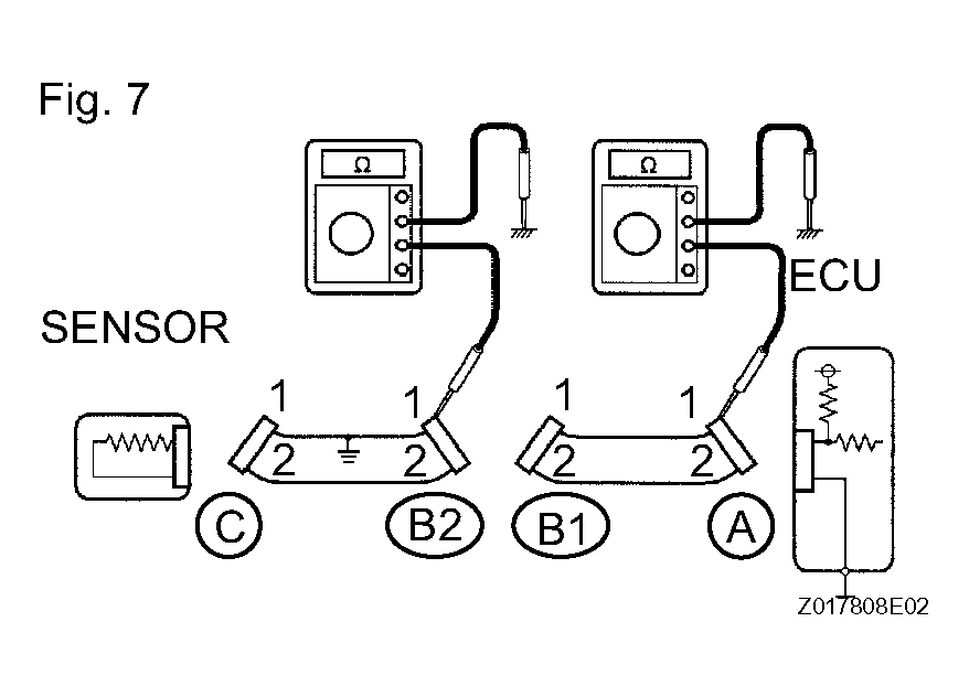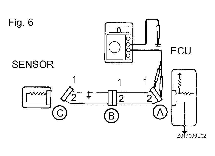 - For an open circuit in the wire harness in Fig 6, check the resistance or voltage, as described below.