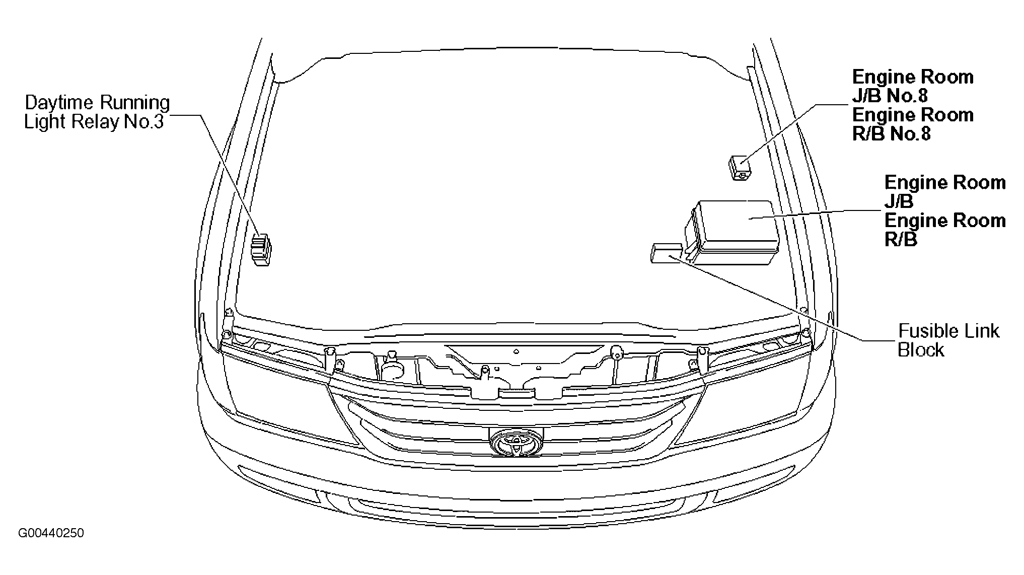 | Engine Room J/B No. 8 | Left side of engine compartment. See Figure. |