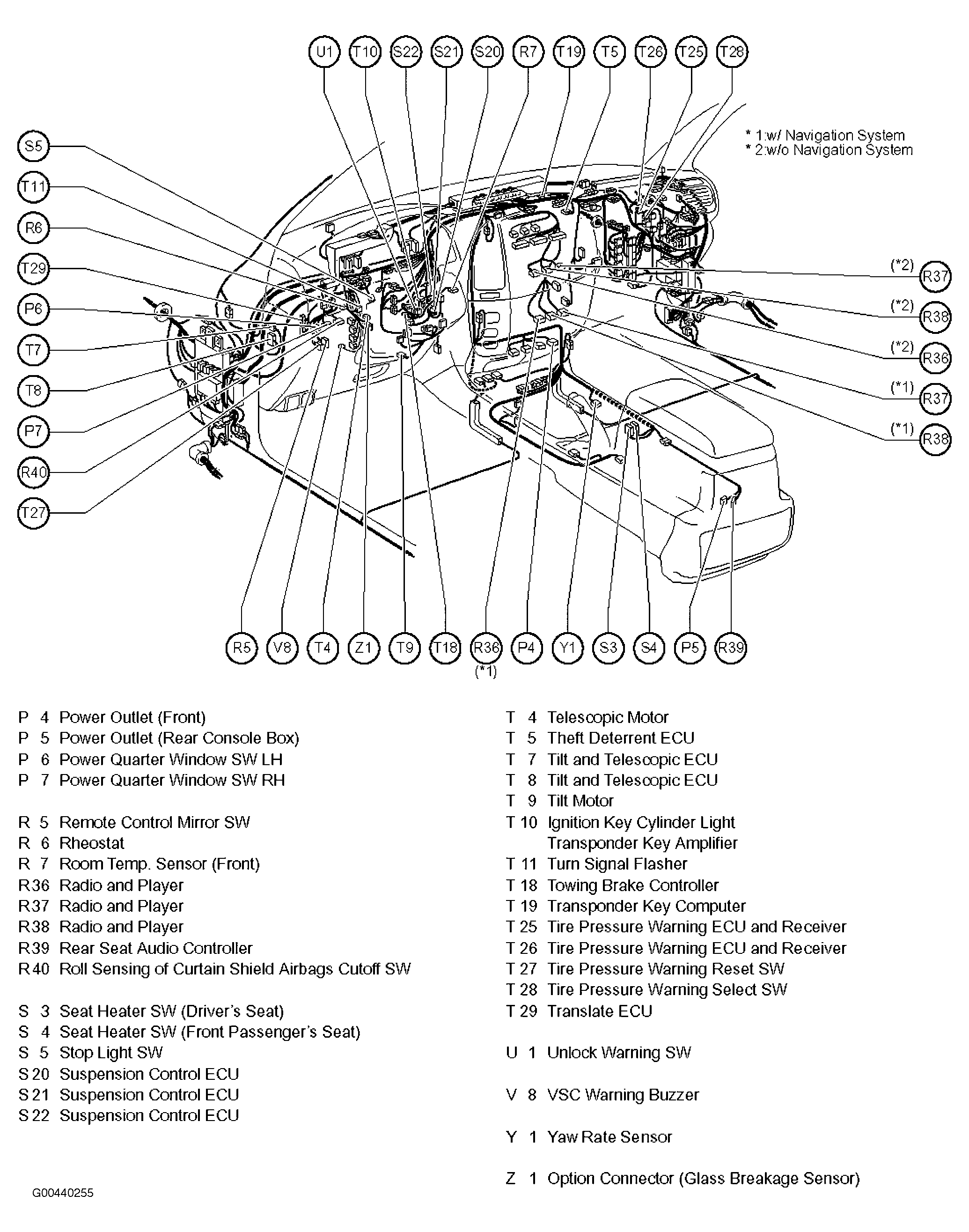 | Navigation ECU | Under front passenger's seat. See Figure. |