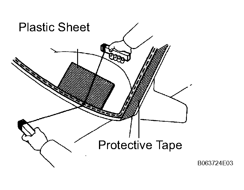 - Apply protective tape to the outer surface of the vehicle body to prevent scratches.