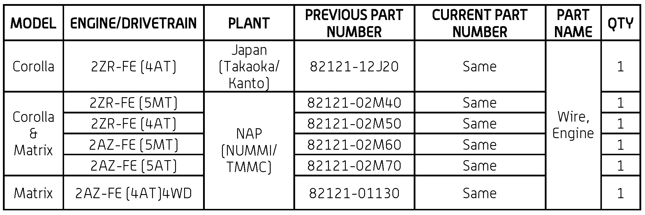 Some 2009 model year Corolla and Matrix vehicles may exhibit a M.I.L. "ON" DTC condition with one or more of the following Diagnostic Trouble Codes (DTCs):