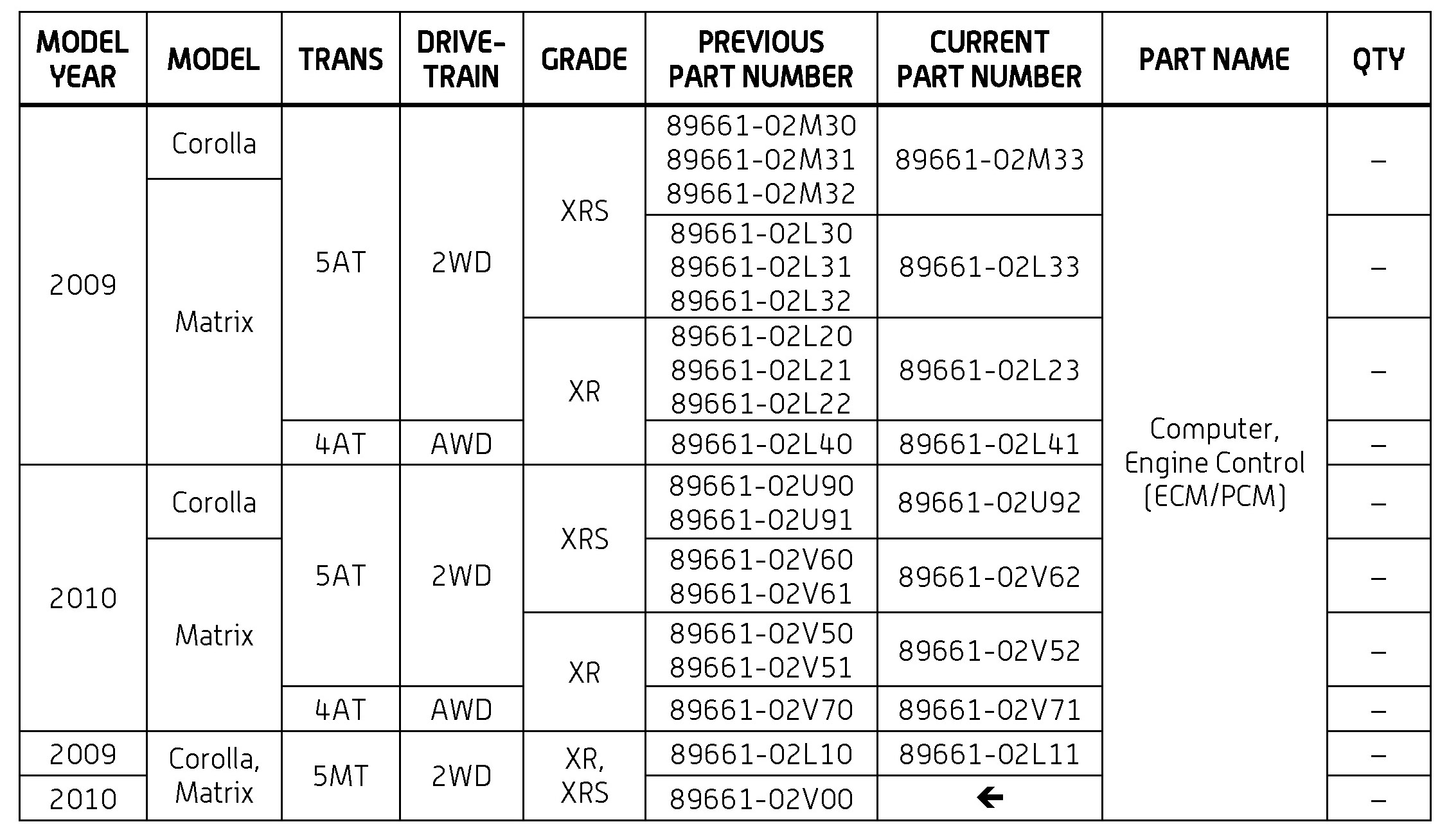'09-'10 Corolla; Matrix