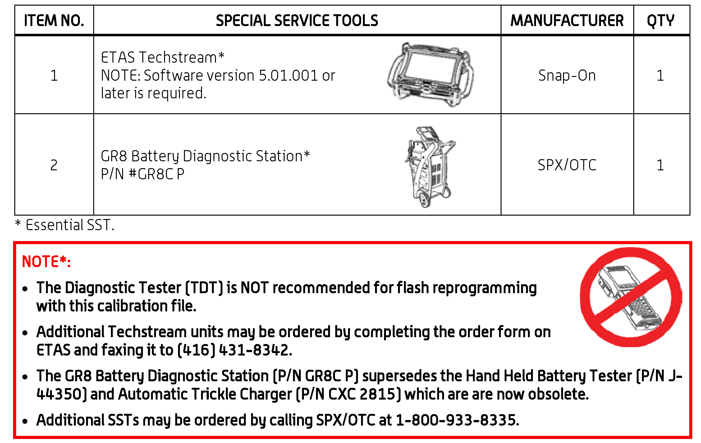 - For details on how to use the GR8 Battery Diagnostic Station, refer to the GR8 Battery Diagnostic Station Instruction Manual located on ETAS/TIS library > Tools > tools and equipment > GR8 Battery Diagnostic Station Instruction Manual.