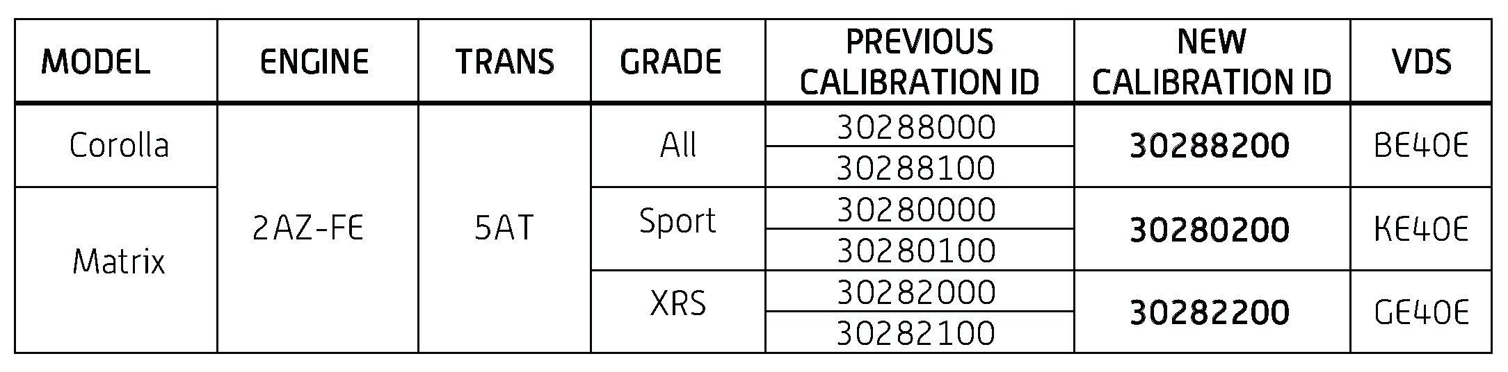 - Calibration ID(s) [Refer to the Calibration Identification Chart for the NEW CALIBRATION ID]