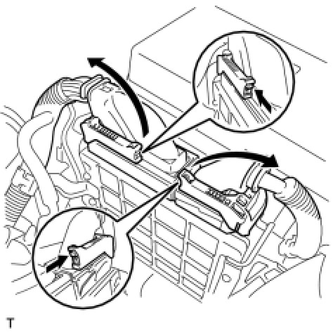 (1) Push the locks on the 2 levers, then raise the levers, and disconnect the 2 ECM connectors.