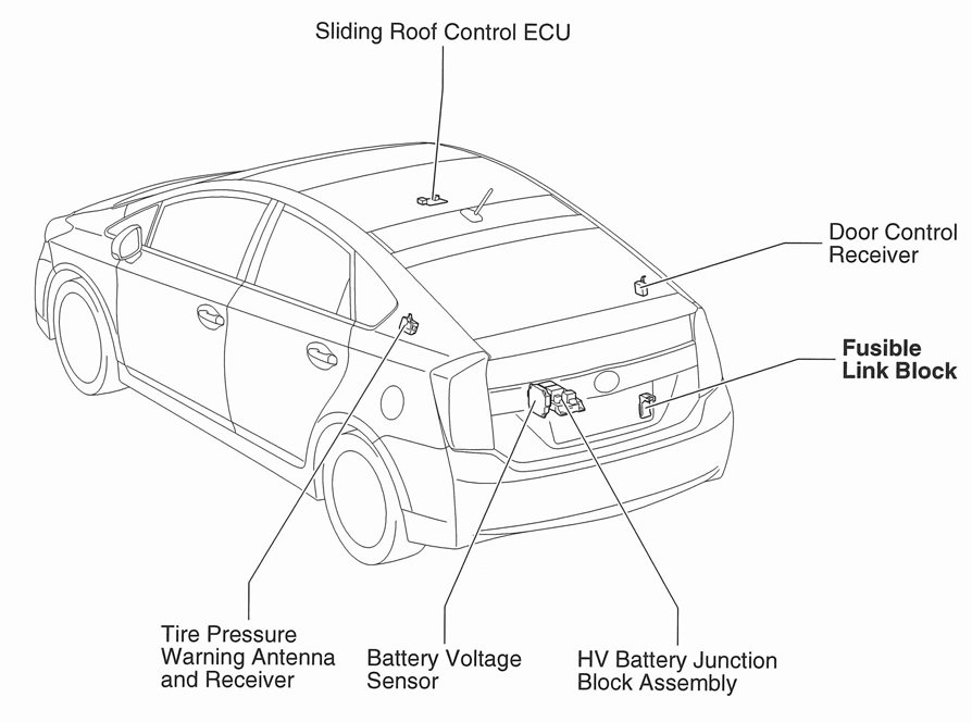 | Sliding Roof Control ECU | Center of roof. See Figure. |