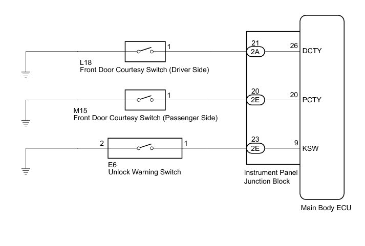 6. CHECK HARNESS AND CONNECTOR (FRONT DOOR COURTESY LIGHT SWITCH - JUNCTION BLOCK)