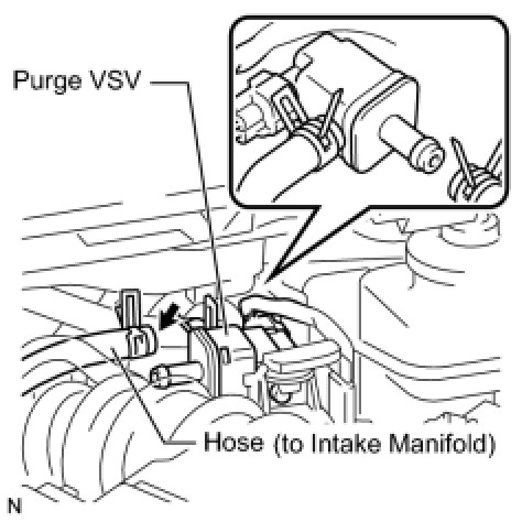 (a) Disconnect the fuel vapor feed hose (connected to the intake manifold) from the purge VSV.