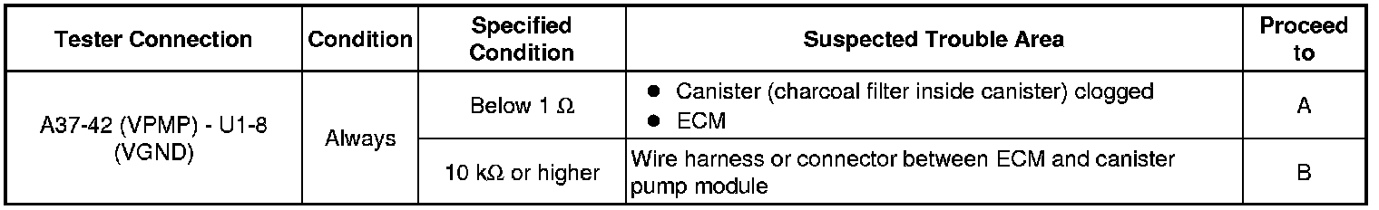 B -- CHECK HARNESS AND CONNECTOR (ECM - CANISTER PUMP MODULE)