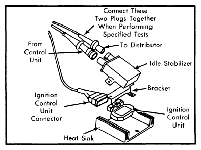 - If engine will not start, check idle stabilizer first. See Fig 1. Remove both connectors from idle stabilizer and connect them together. This by-passes the idle stabilizer connecting the ignition control unit directly to the distributor. If engine now starts, idle stabilizer is defective.
