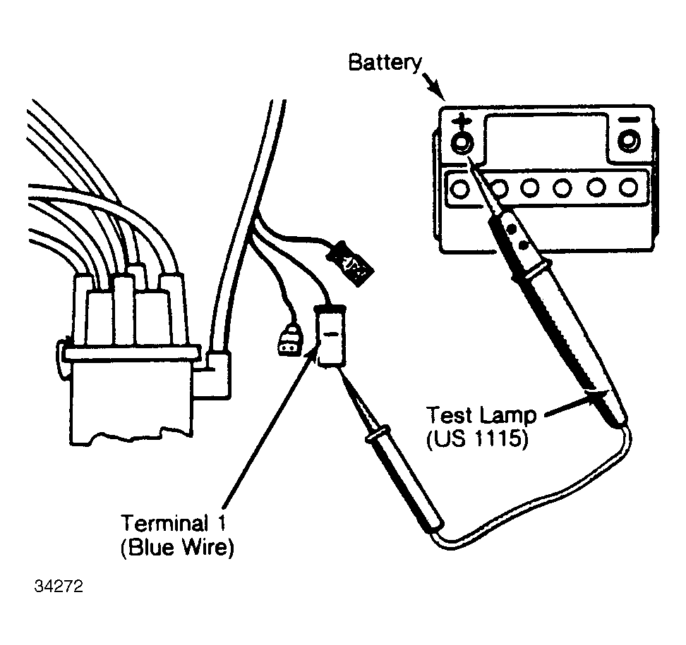 - Connect Test Lamp (US 1115 ) to battery positive terminal and to terminal 1 (single connector with Blue wire). See Fig 1. Test lamp Light Emitting Diode (LED) must light up.