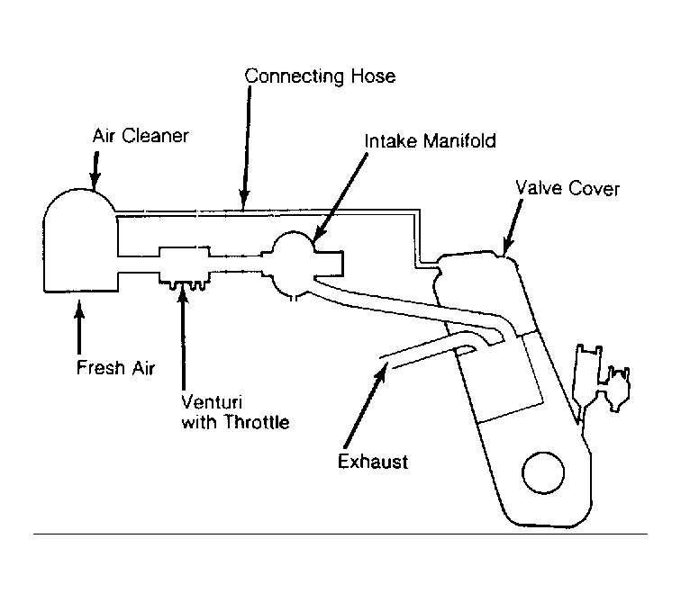 Closed crankcase ventilation systems usually consist of one or more of the following: PCV valve, oil separator, blow-by filter and connecting hoses. For illustration of typical PCV systems, See Figure .