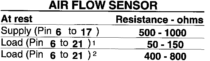 1 Flap on air flow sensor closed or air flow sensor plate at rest position. Resistance increases as flap or plate opens.